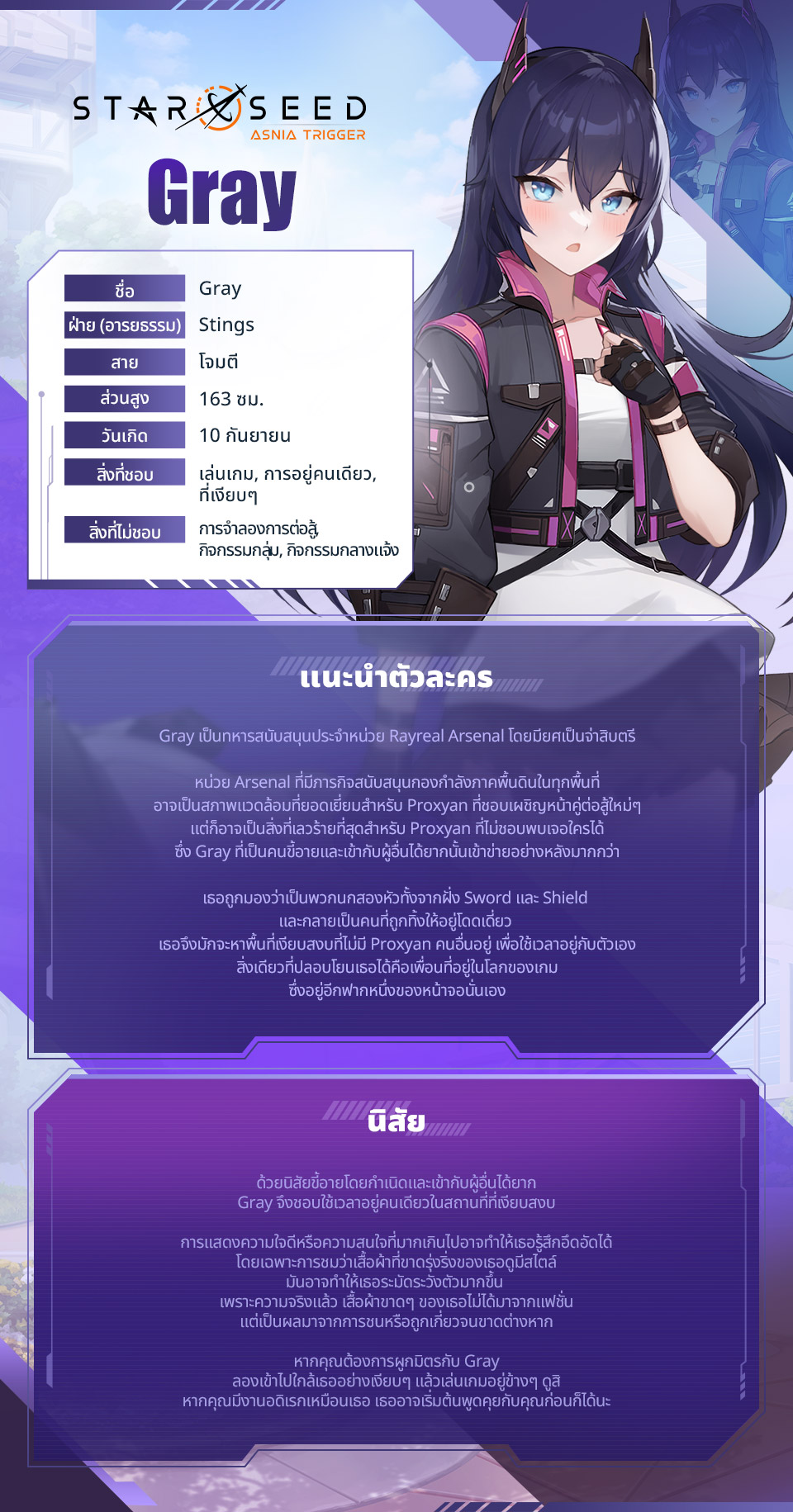 วันนี้เราจะมาแนะนำ Gray สังกัด Rayreal Arsenal แห่ง Stings ให้ได้รู้จักกันค่ะ