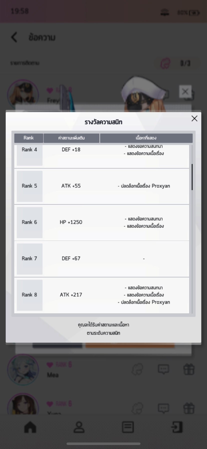 ยังมีสเตตัสซ่อนอยู่ในแต่ละเลเวล ถ้าเราทำค่าความสนิทถึงเลเวล8 เราจะได้ATKรวมถึง288หน่วยเลยทีเดียว