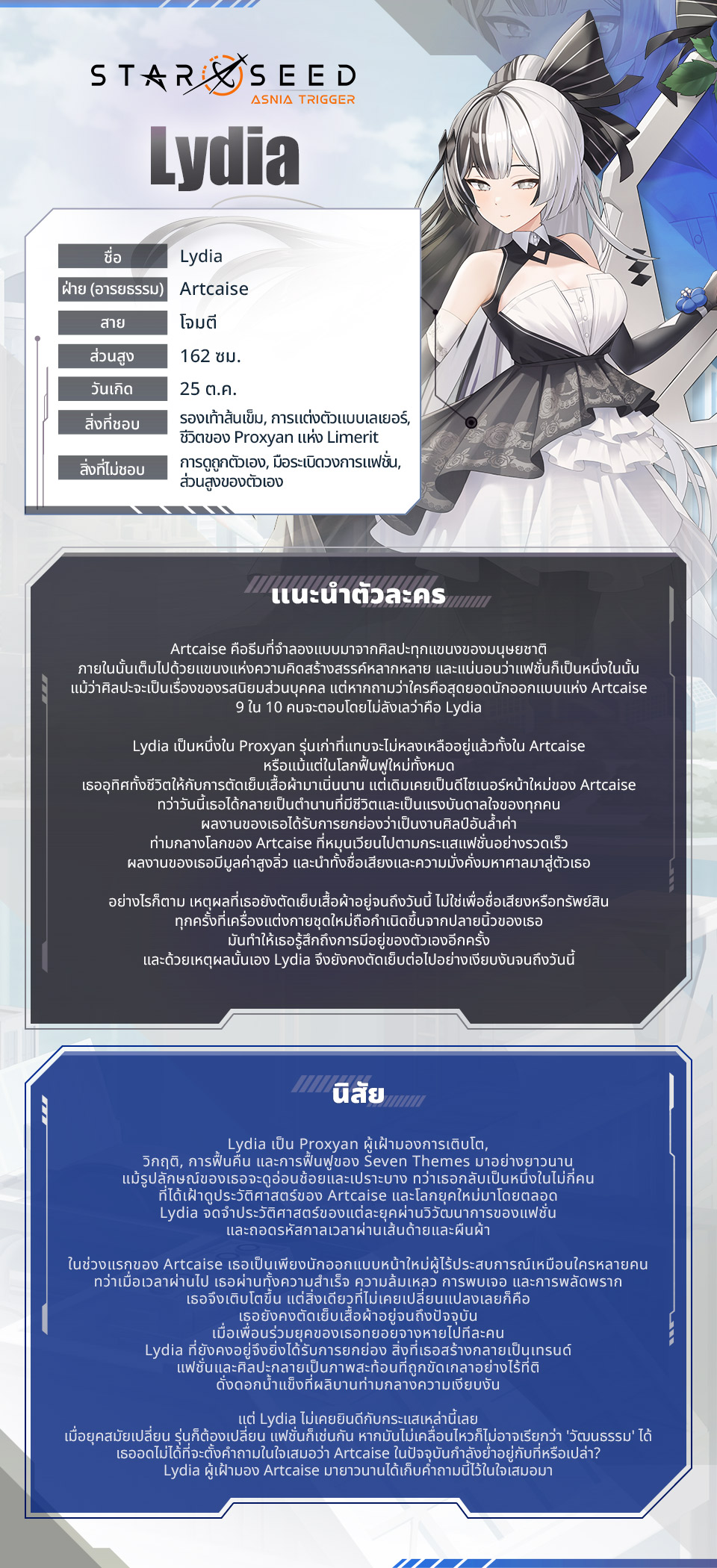 ไปดูรายละเอียดเพิ่มเติมเกี่ยวกับ Lydia ที่ด้านล่างนี้กันเลยค่ะ!