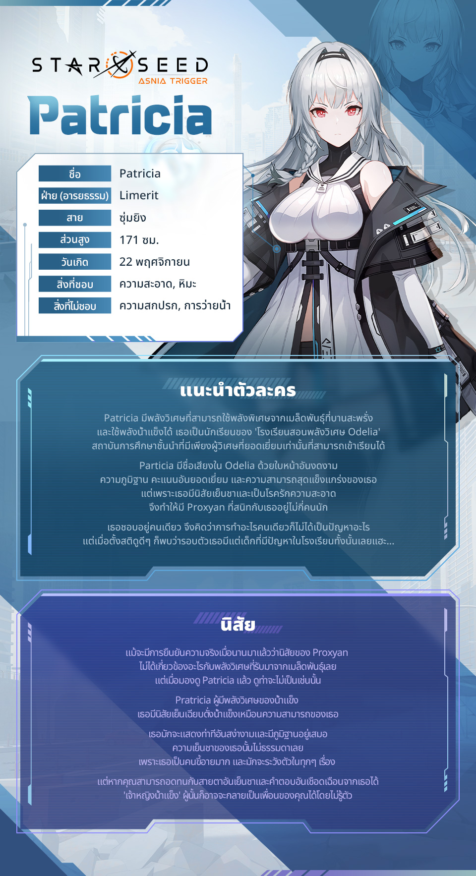 วันนี้เราจะมาแนะนำ Patricia จากโรงเรียนสอนพลังวิเศษ Odelia แห่ง Limerit ให้ได้รู้จักกันค่ะ