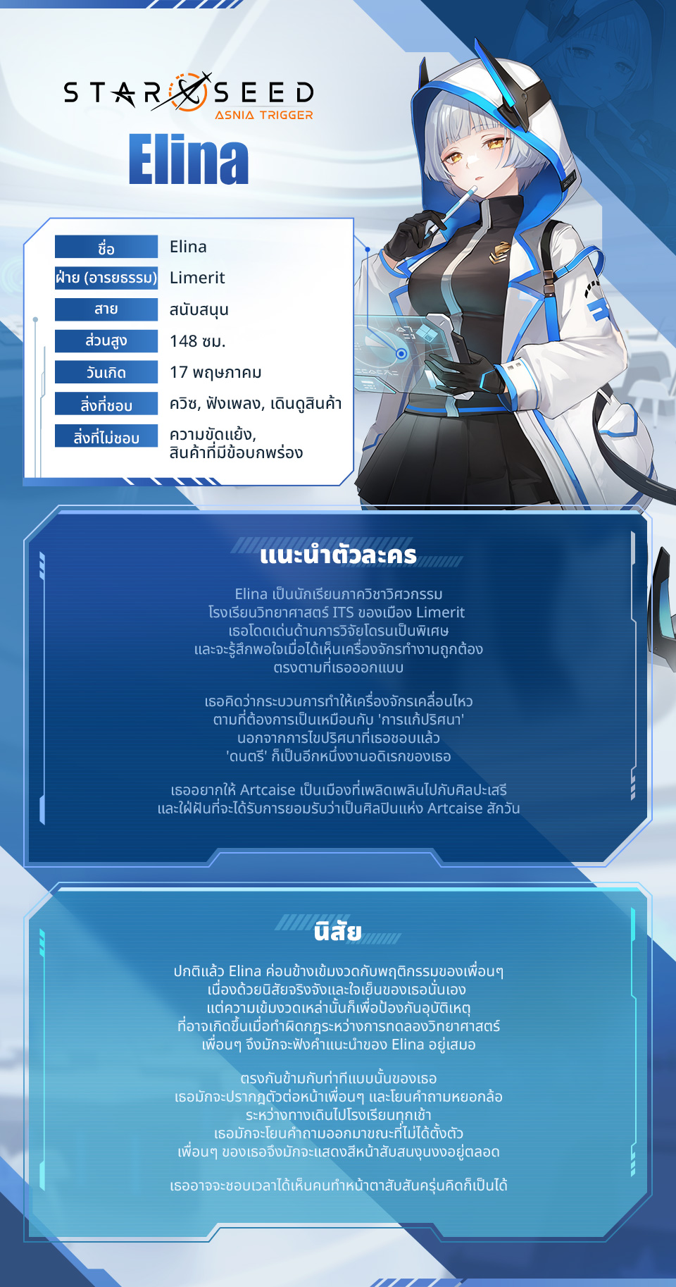 วันนี้เราจะมาแนะนำ Elina นักเรียนภาควิชาวิศวกรรมผู้จริงจังแห่ง Limerit ให้ได้รู้จักกันค่ะ