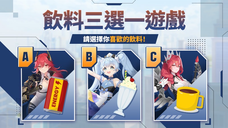 - 請於留言中填寫克萊絲(能量飲料)、科曼(蘇打果汁)或瑪琪(咖啡)所準備的飲品之一!