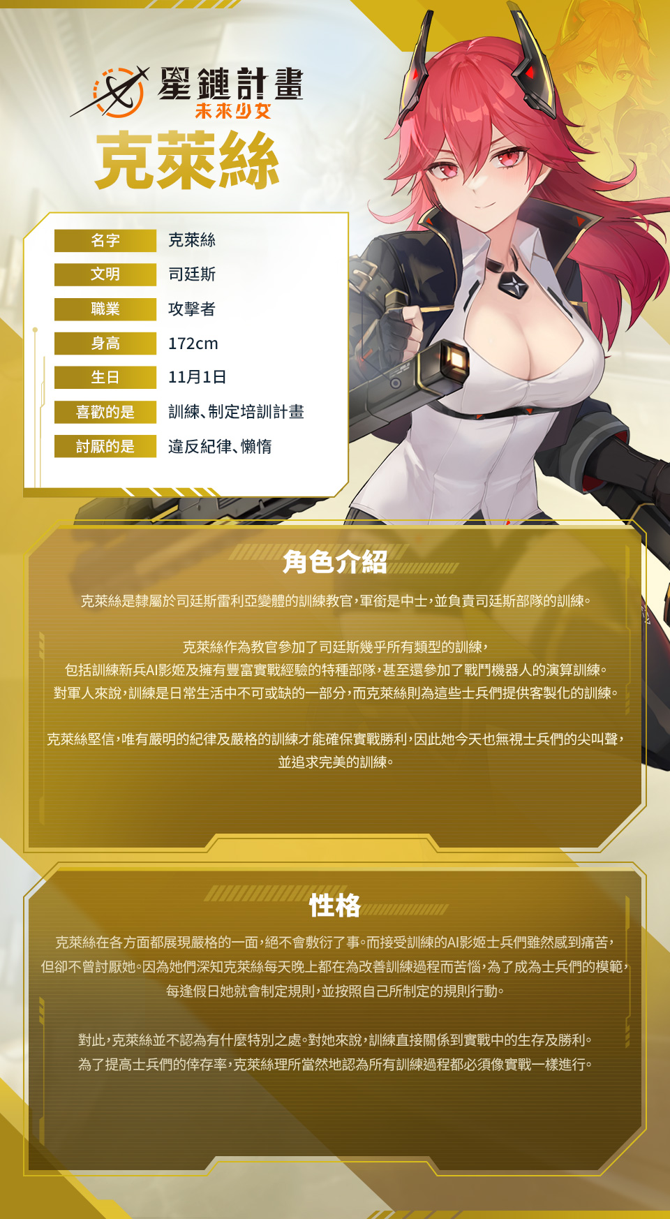 今天我們將為大家介紹的AI影姬是隸屬於司廷斯雷利亞變體的克萊絲。