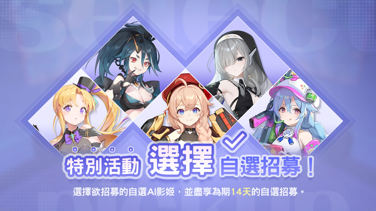 * 可於活動期間,選擇1種欲招募的自選AI影姬。活動結束後,將無法選擇自選招募對象。