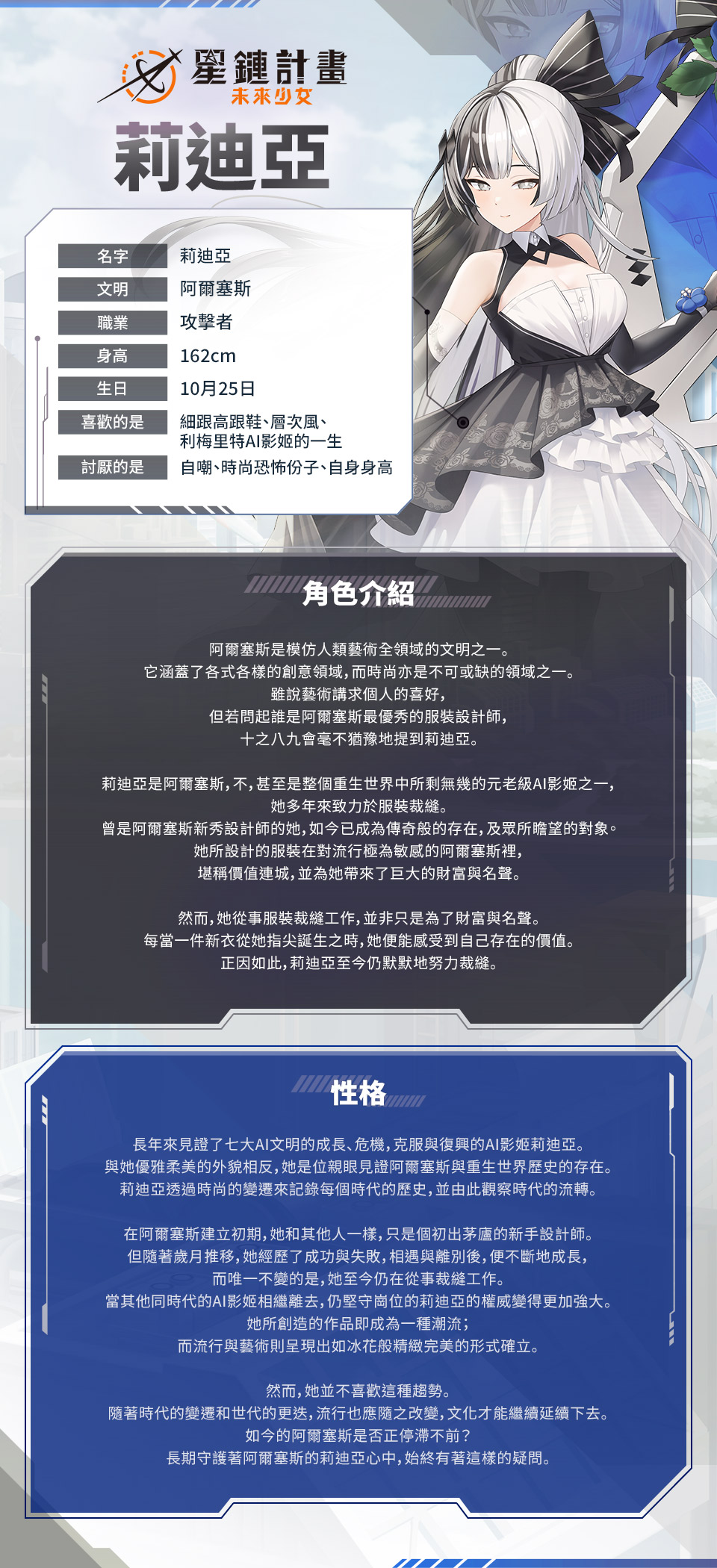 莉迪亞不僅是見證了七大AI文明的成長、危機、克服與復興的傳奇人物,同時也是引領潮流的時尚達人。