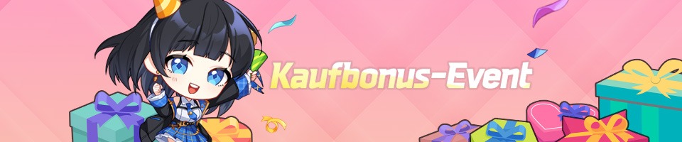 Ein Kaufbonus-Event hat begonnen, bei dem du während des Eventzeitraums beim Kauf beliebiger Angebote im Cash-Shop zusätzliche Belohnungen erhalten kannst.