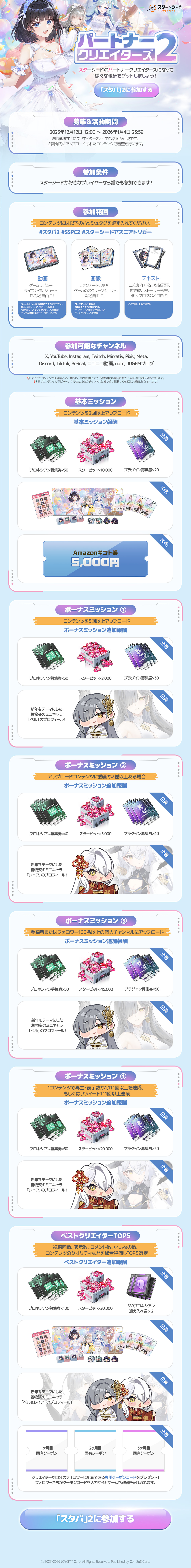 ・スターシード「Pixivイラストコンテスト」に出品したファンアートを「パートナークリエイターズ第2弾」に重複して提出した場合、参加とみなされません。