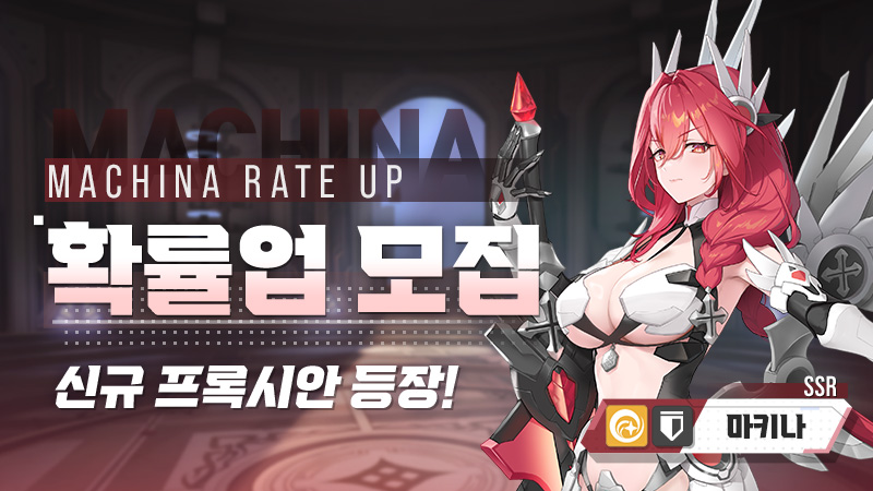 - 이벤트 기간 동안 ‘마키나’를 높은 확률로 획득 할 수 있는 확률업 모집이 진행됩니다.