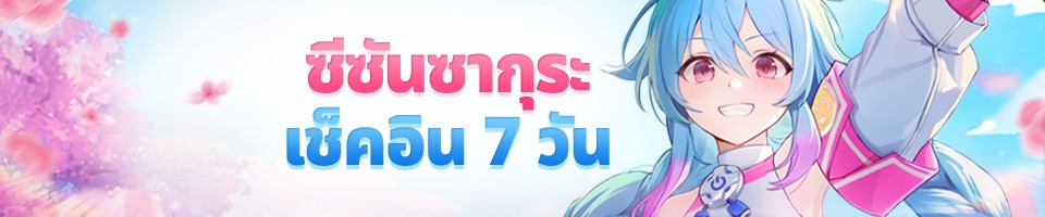 - '[ซีซันดอกซากุระ] กิจกรรมเช็คอิน 7 วัน' จะคงอยู่เป็นเวลา 10 วันนับจากวันที่ล็อกอินครั้งแรก