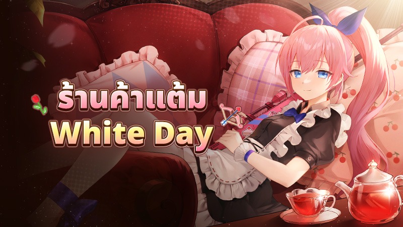 พบกับ [ร้านค้าแต้มWhite Day] ที่คุณจะได้รับหน่วยเงินกิจกรรม (ริบบิ้ิน) เมื่อซื้อแพ็กเกจที่กำหนดภายในระยะเวลากิจกรรม และสามารถนำหน่วยเงินกิจกรรมดังกล่าวไปซื้อไอเทมต่างๆ เพิ่มเติมได้!