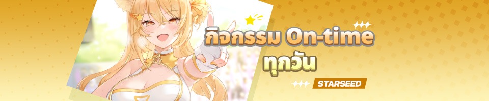 - ต้องรับรางวัลผ่านเมนูกิจกรรม On-Time ภายในระยะเวลากิจกรรม และรางวัลที่ไม่ได้รับจะไม่ถูกจัดส่งซ้ำหลังจบกิจกรรม