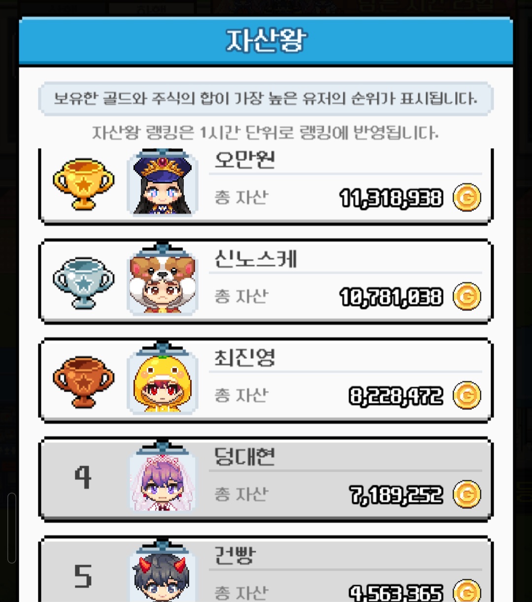 이렇게 오랫동안 한 게임도 없는데소통도 하고 채팅방도 들어가서 대화도하고 정말 재밌게 겜했어요^^다들 건강하시구! 항상 좋은일만 가득하길 바랄게요 안녕히 계세요~ 그럼 이만ㅎㅎ