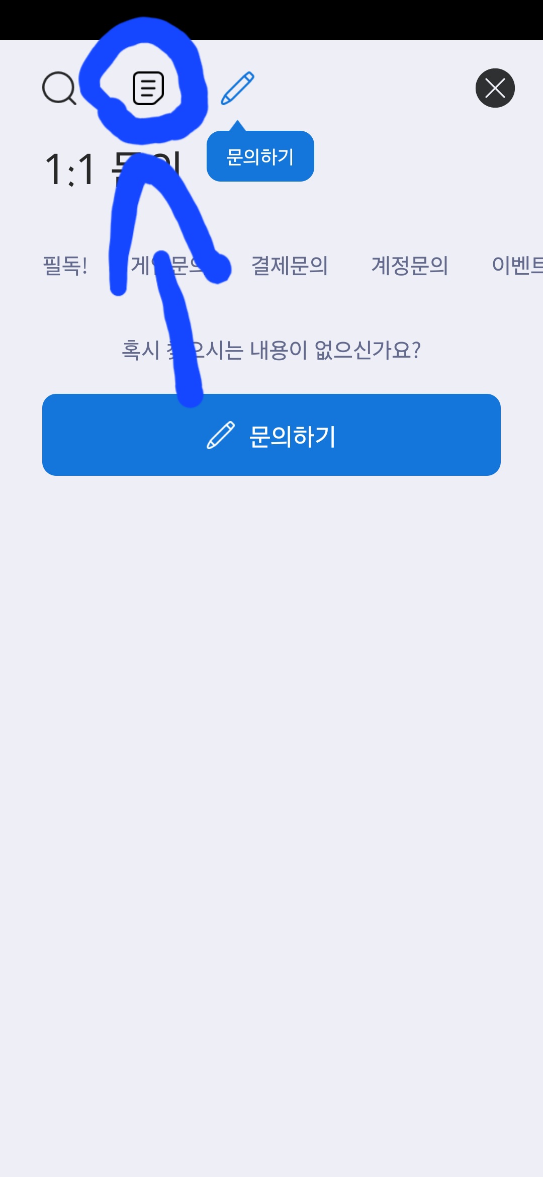 (1)다른것들은 위에 내용과 비슷해요 단! 이제 문의하기 대신 위에 종이모양을 눌러주세요
