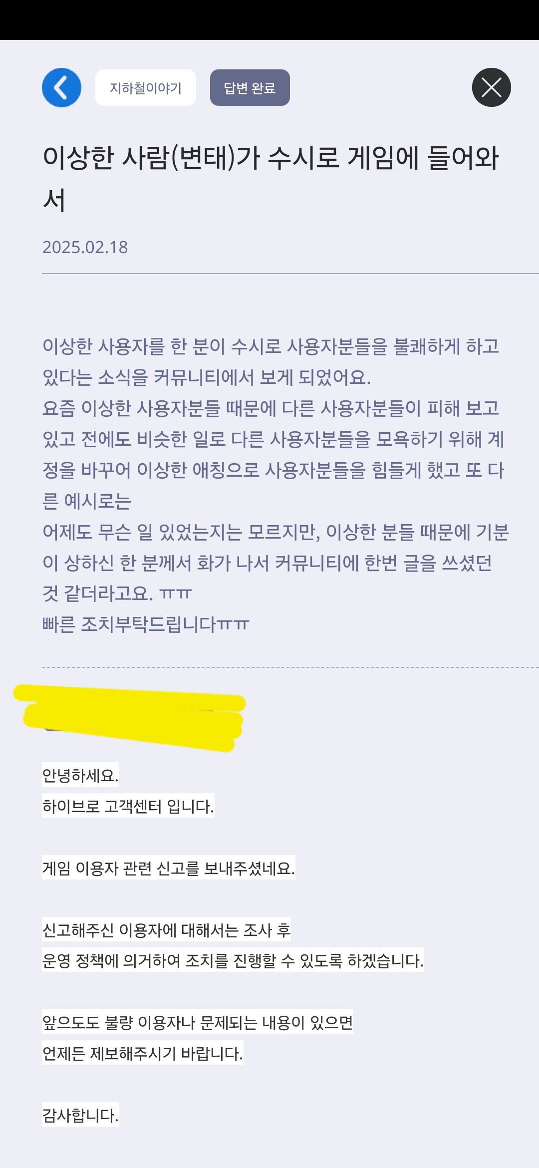 고객 센터로 문의하면 커뮤답장보다 빨리달아주시더라구요