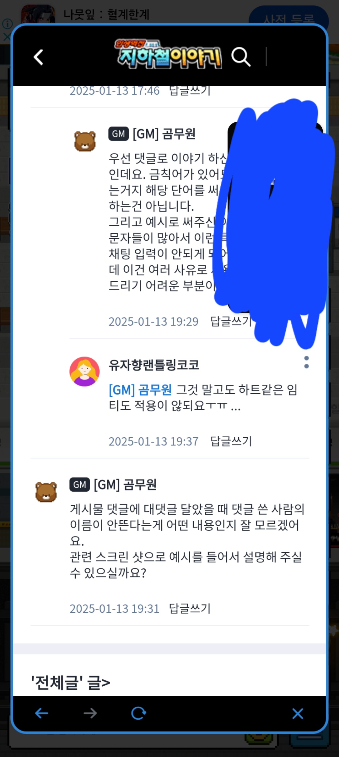 오류인건지 곰님말처럼 보내지고 입력한 단어중 불건전 한것이 있다며 알려주는 경고창이 떠야하는데 ... 입력창에 써서 확인 누르면 보내저야되는데... 않보내지고 입력창에 입력해달라는 창만 위에 떠요...