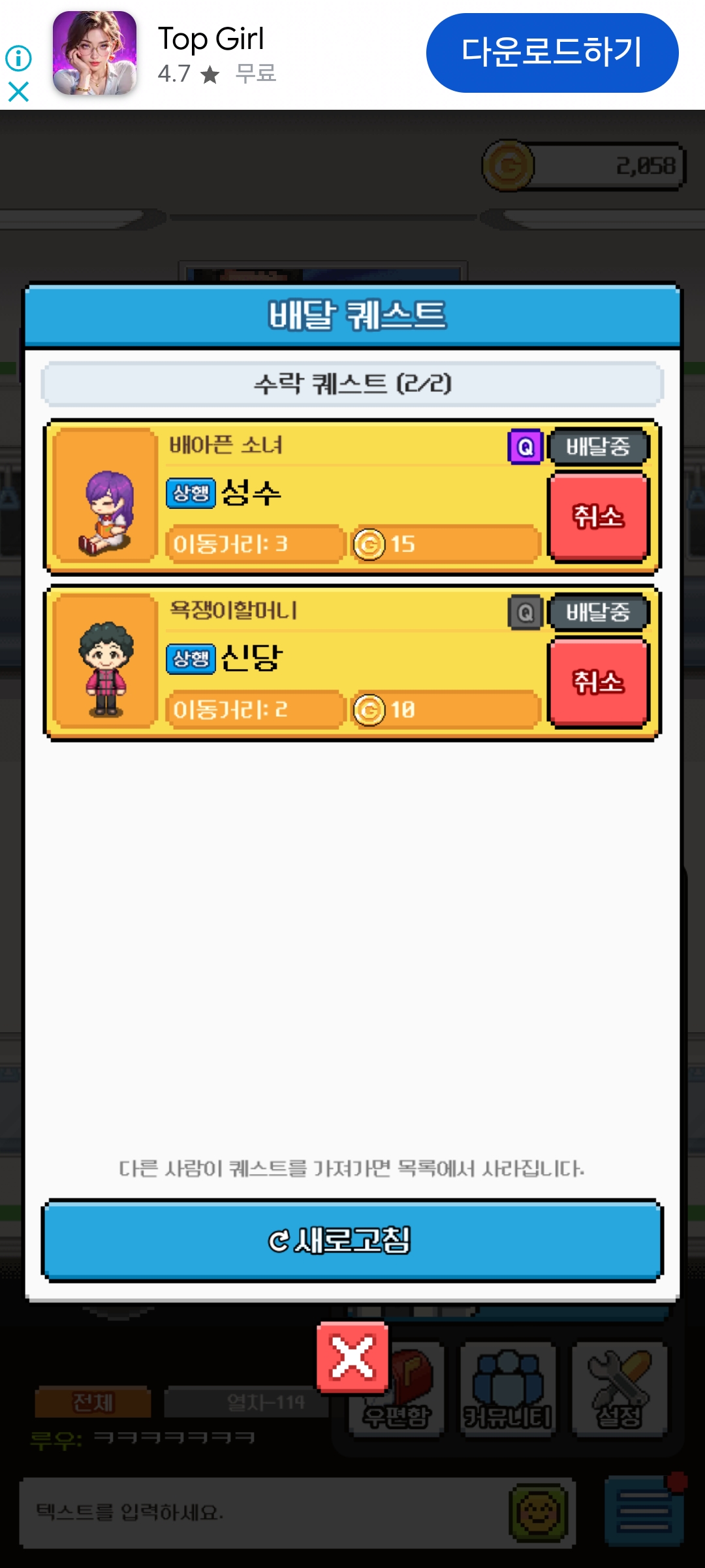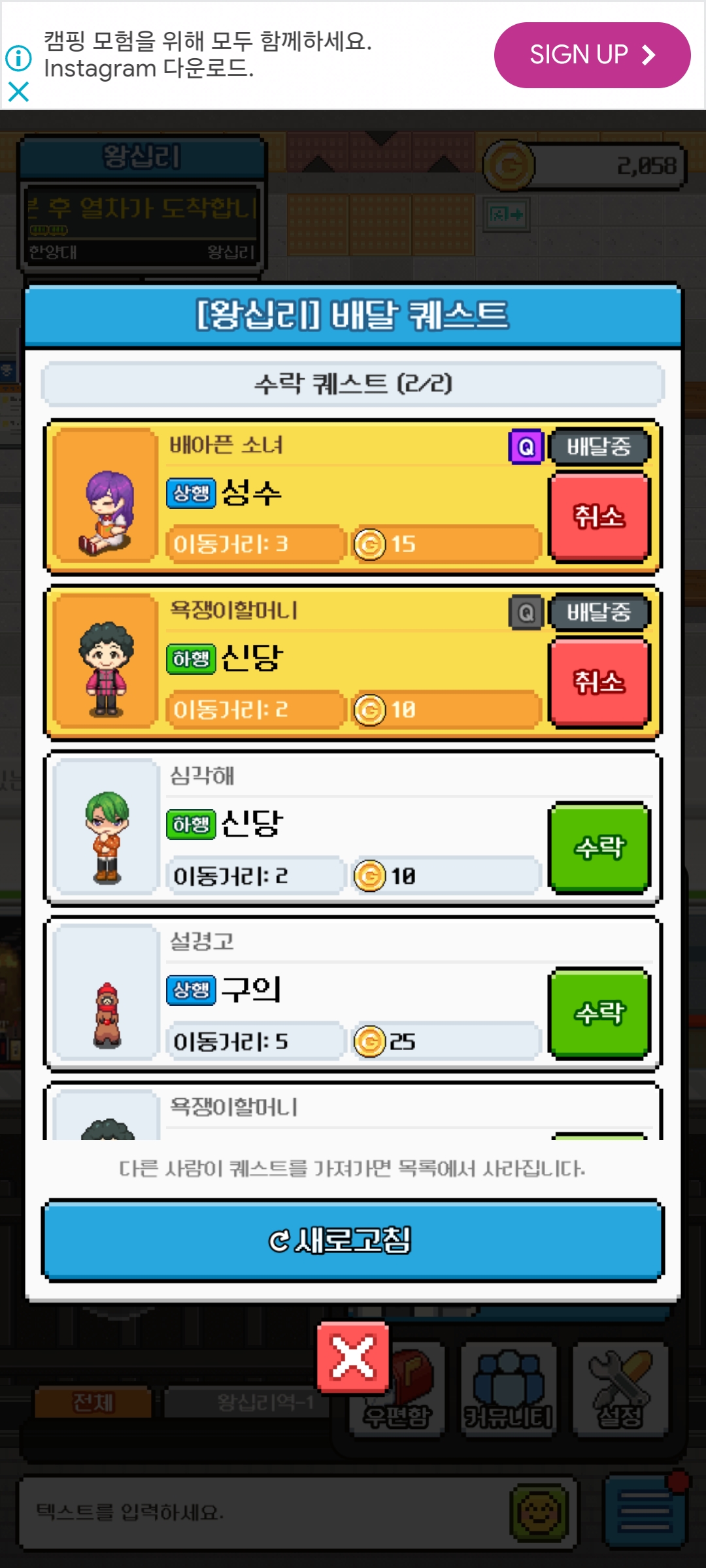 지하철 승강장에서 상행 하행 다른 퀘스트를 고르면 배달 퀘스트 창에서도 상행 하행 정상적으로 표시됩니다. 하지만 지하철에 탑승하면 상행 하행이 아니라 상행으로만 표시되고 있습니다. 첨부한 사진에 보시면 지하철에 탑승했을 때 배달 퀘스트 창에 전부 상행이라 표시되어 있으며, 상행 열차에 탑승하고 있는데 상행 방면 퀘스트를 목적지로 설정하면 몇 개역 이동 후 하차하라고 하지만 하행 방면 퀘스트를 목적지로 설정하면 반대편 열차를 탑승해 달라고 나오는 것을 보실 수 있습니다.(하행 열차에 탑승해도 퀘스트 둘 다 상행으로 표시됩니다.) 그리고 지하철을 타고 이동 중임에도 배달 퀘스트 창에 이동 거리가 늘어나거나 줄지 않는 모습도 목격했습니다.