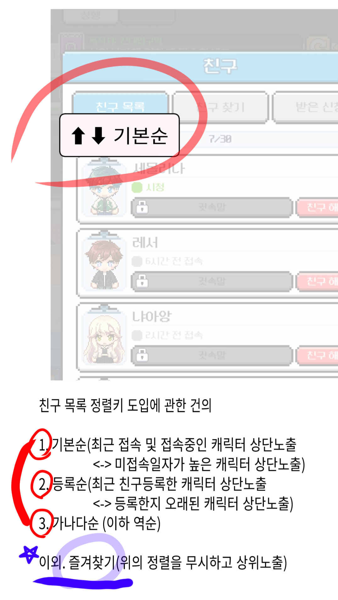 친구등록가능수 확대 / 친구목록 정렬 및 즐겨찾기 기능 도입에 관한 건의
