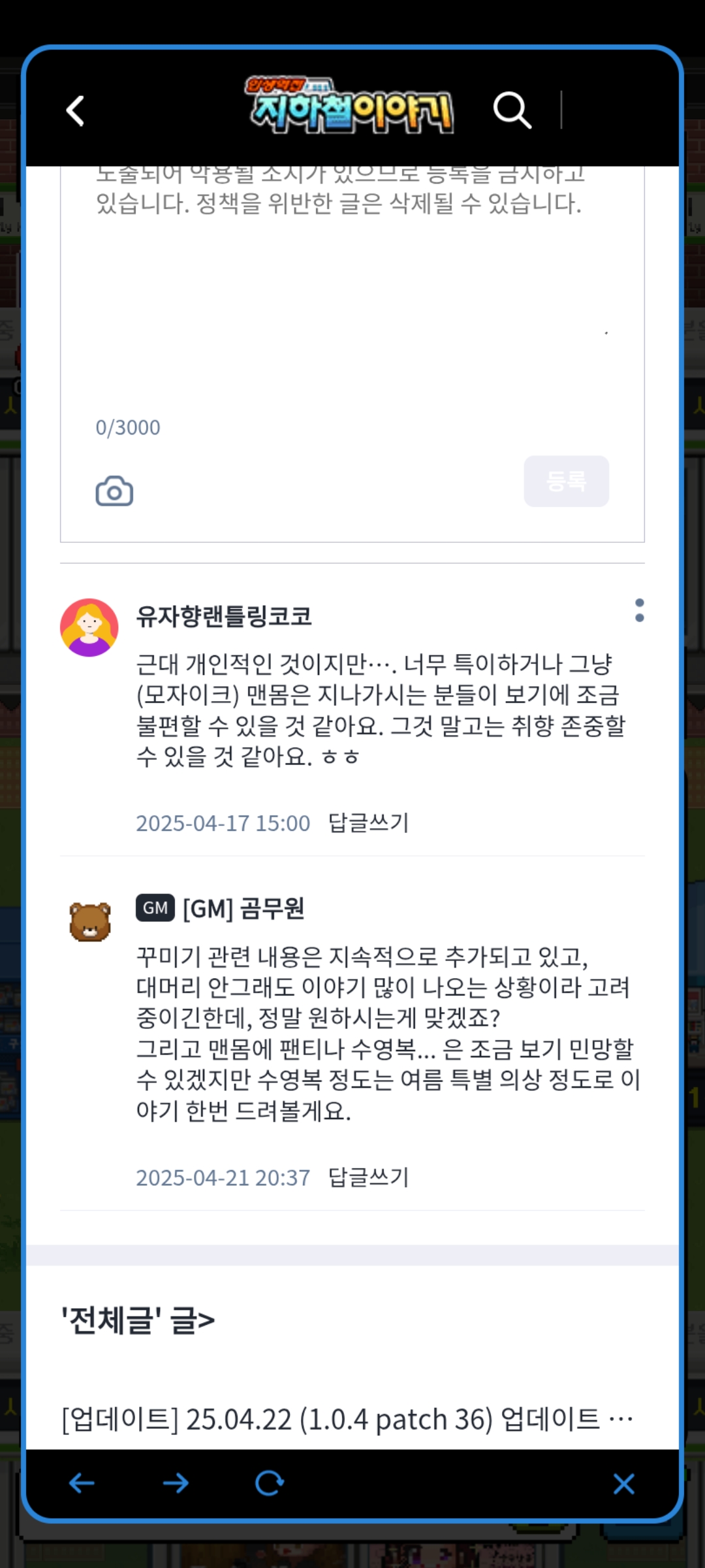 그래도 서로 의견이 상충되는 것은 어쩔 수 없는것이니.. 특히 저 글에 써져있는 것처럼, 맨몸 같은 더 심한 걸 바라시는 분도 계시더군요.