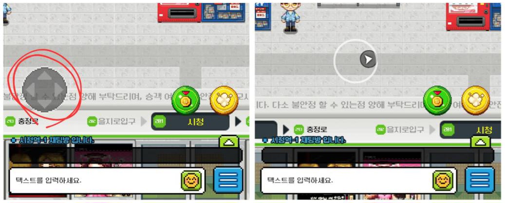 화면 아무곳이나 터치해도 그 위치가 버튼이 있는 곳이 되니 옆에 있는 조작키 이미지는 조금 불필요한 것 같아요