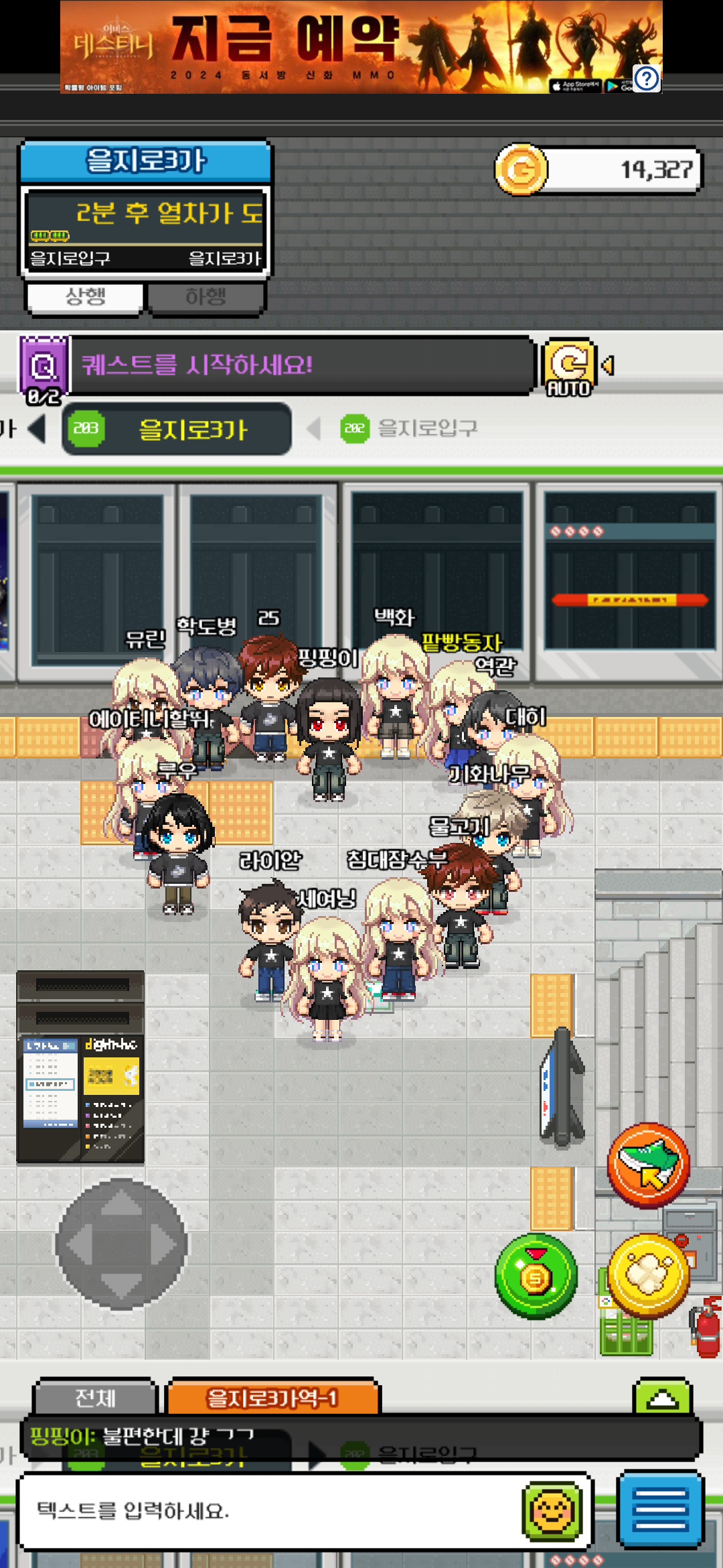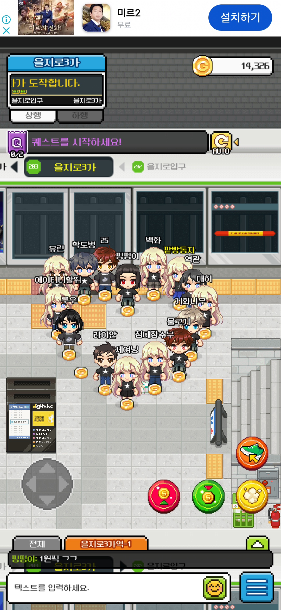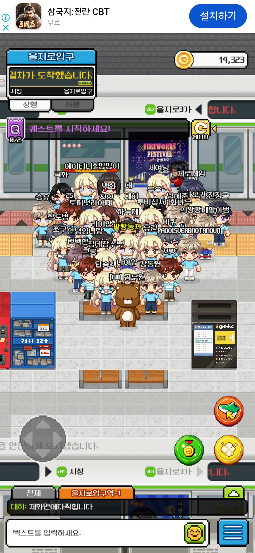 오후 10시 을지로입구역에서 모여 줄을 지어서 함께 사진을 찍고