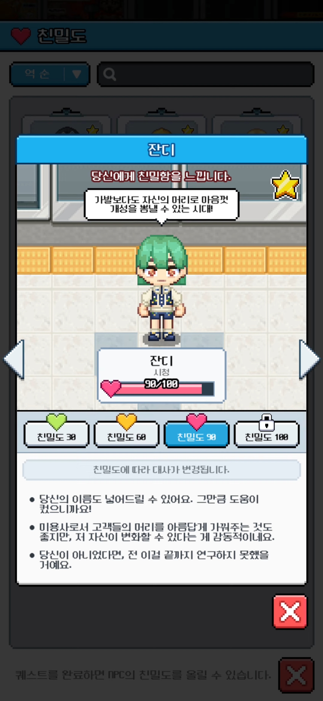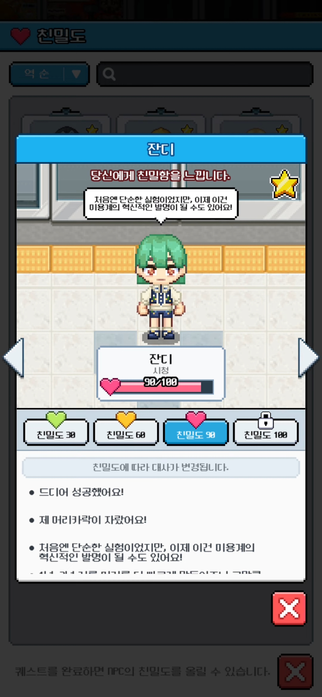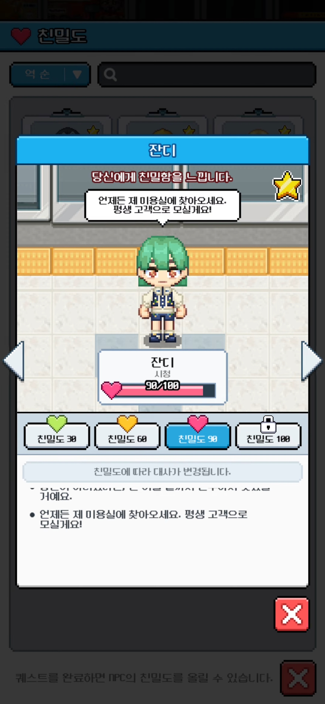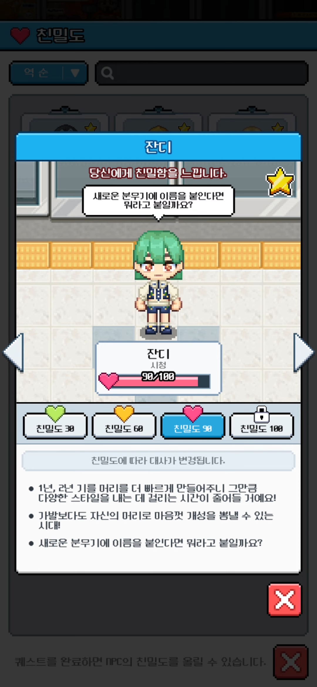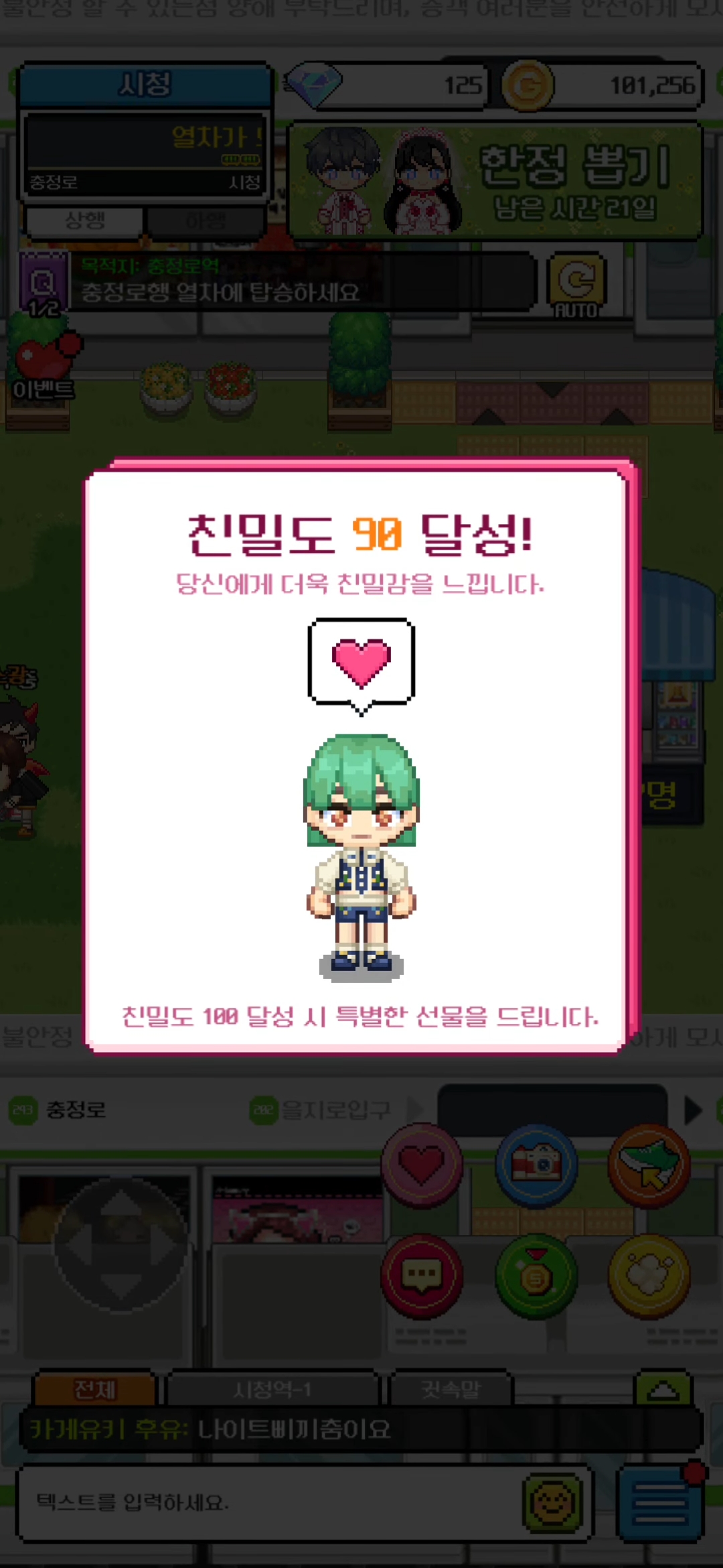 이제 잔디의 친밀도 10만 올리면 100입니다! :)