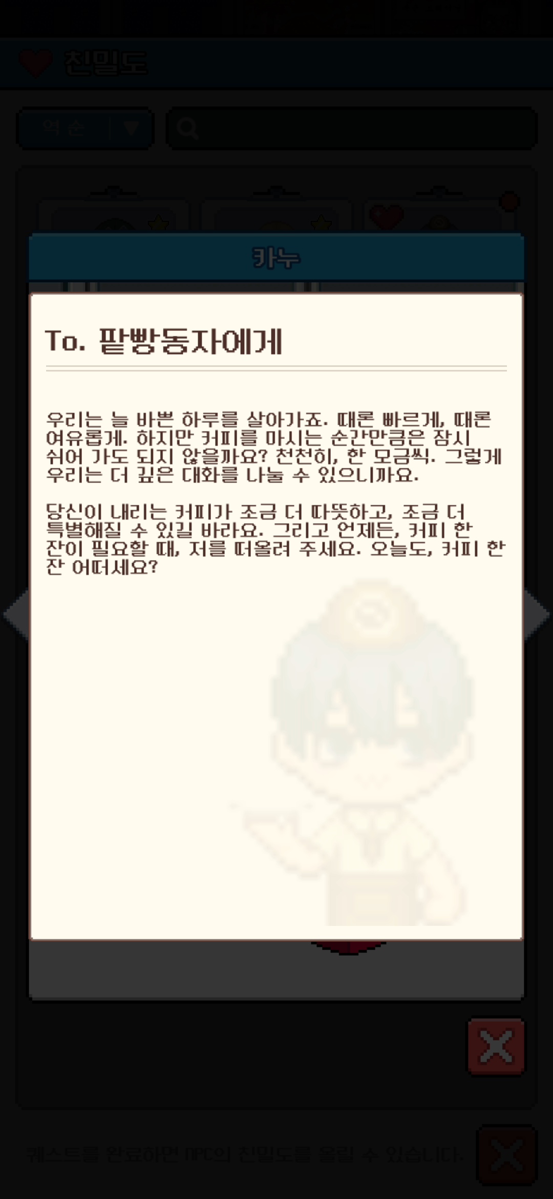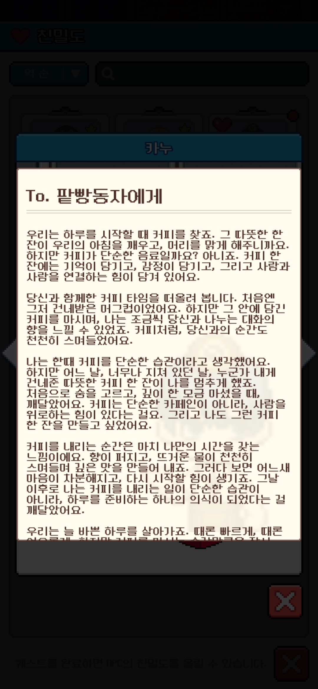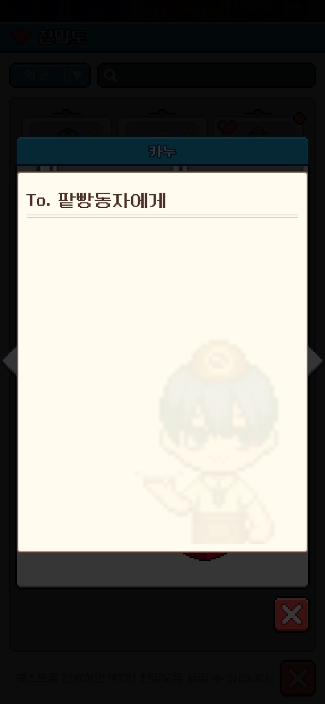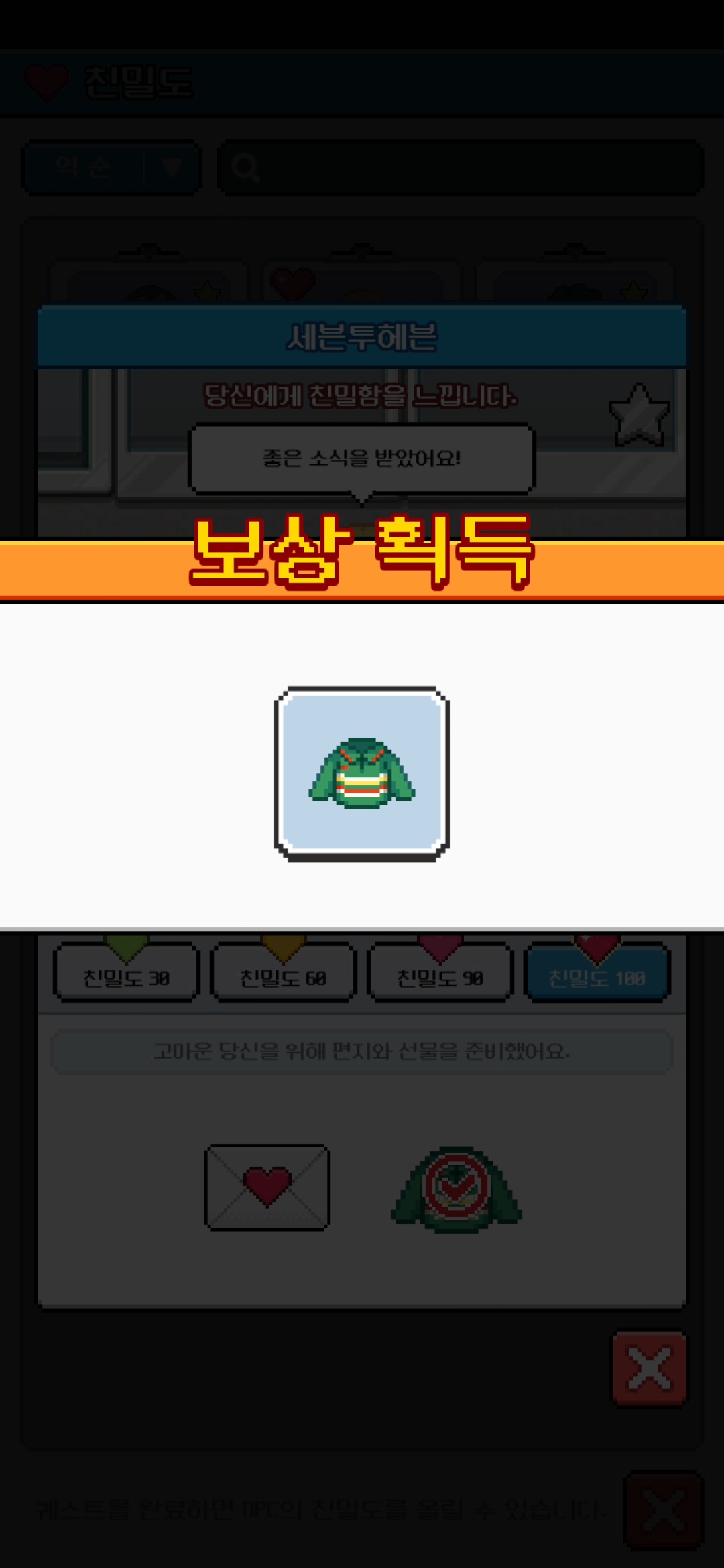 NPC 3명 친밀도 100 채웠습니다! :) (세븐투헤븐 친밀도 90 추가)