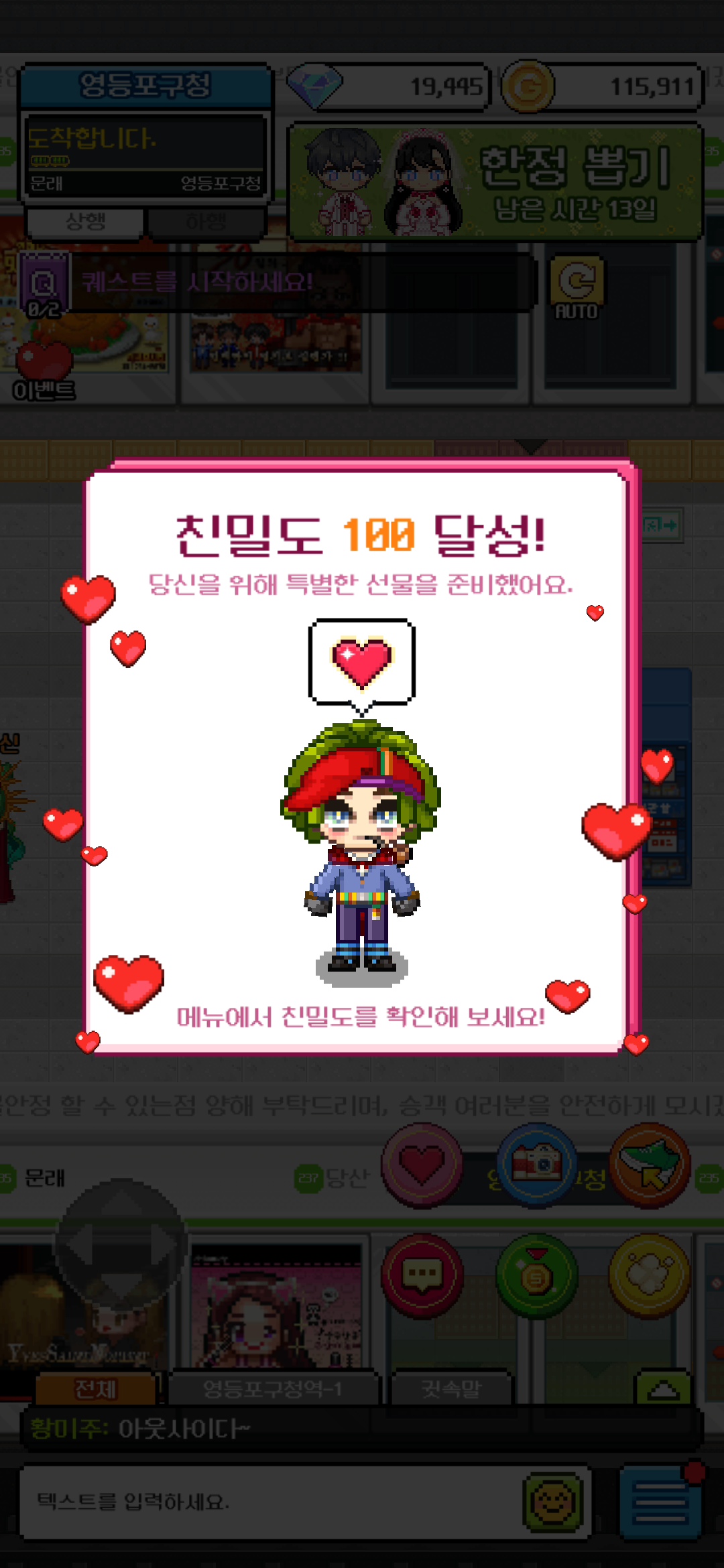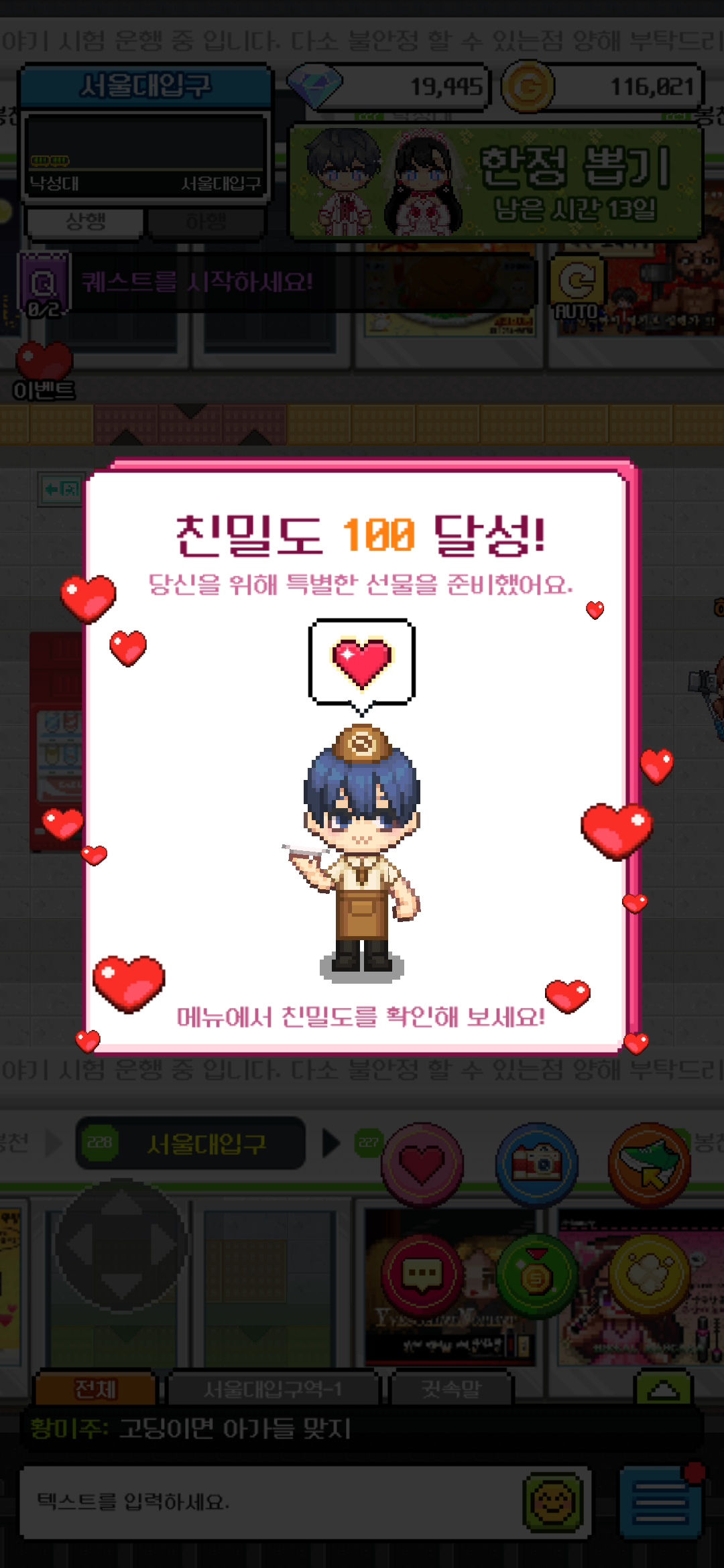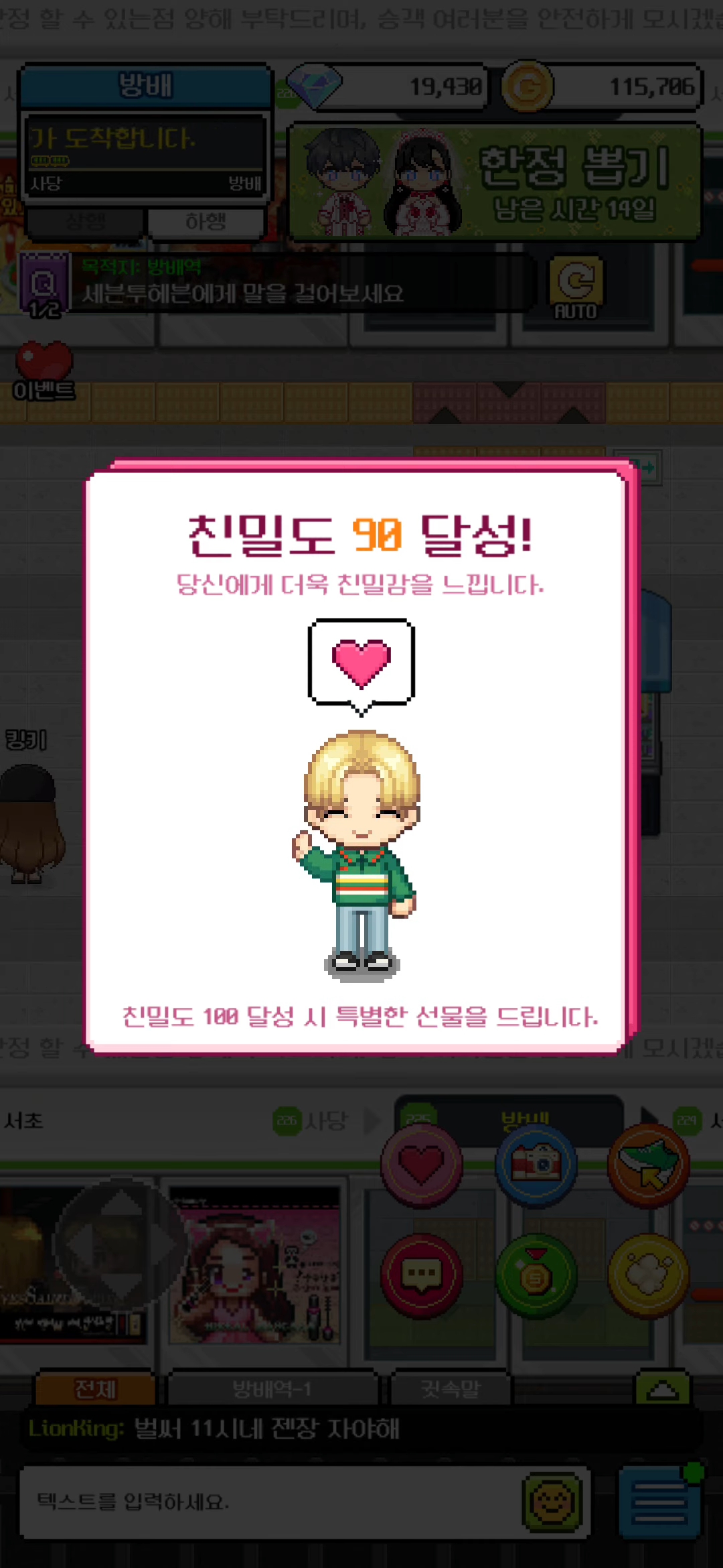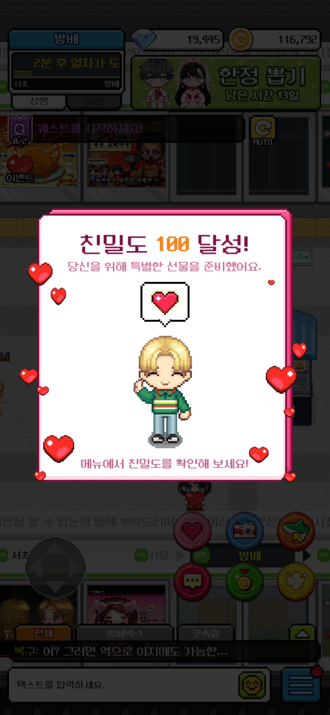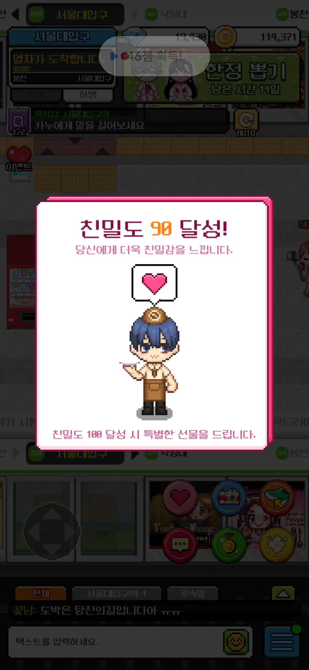 깜빡하고 세븐투헤븐 친밀도 90을 올렸습니다.