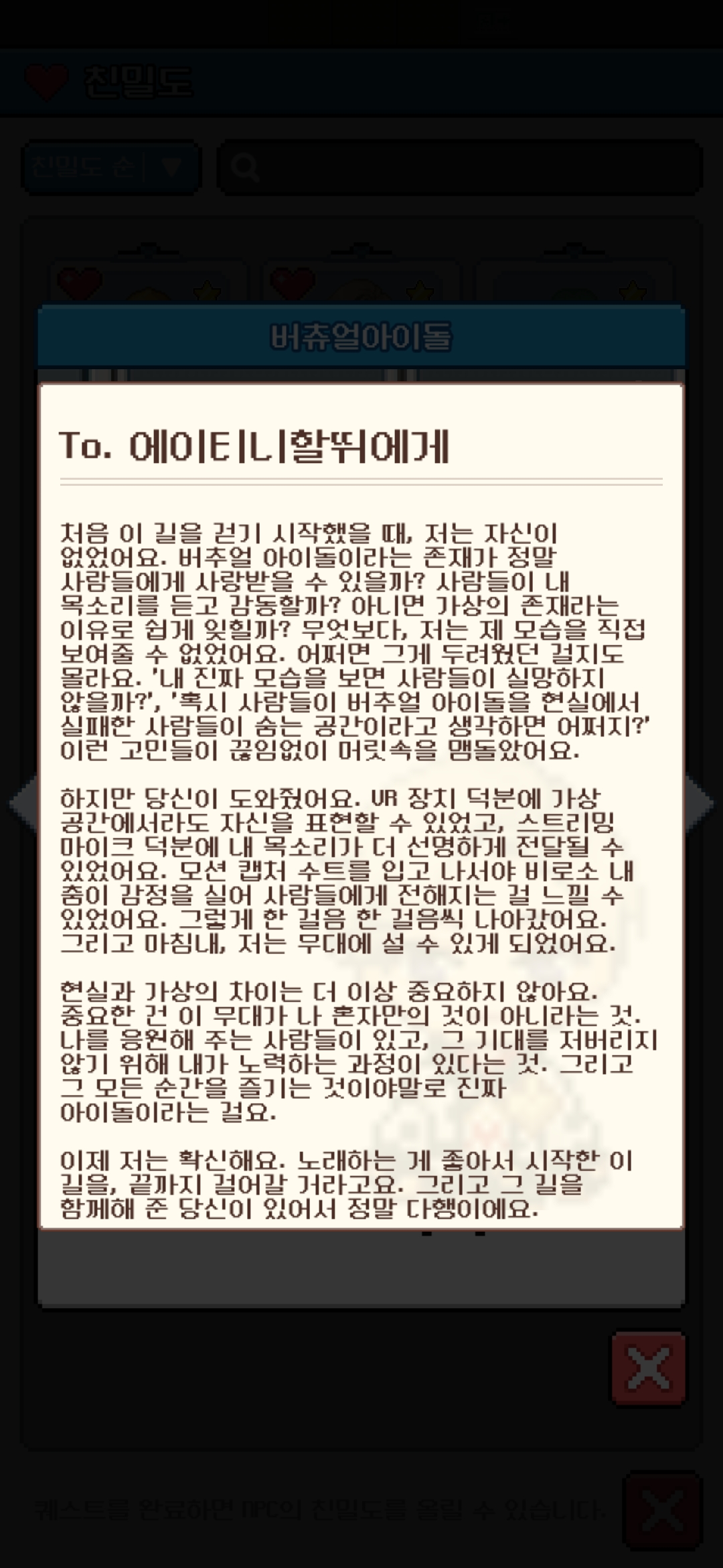 💬자유 게시판 버츄얼아이돌 친밀도 100 달성!! 에이티니할뛰 2025-04-17 22:55 99 1 공유 공유 URL 복사 페이스북 왓츠앱 카카오톡 라인 레딧 닫기 공유 3 5 댓글 1 삭제 이미지첨부 0/3000 등록