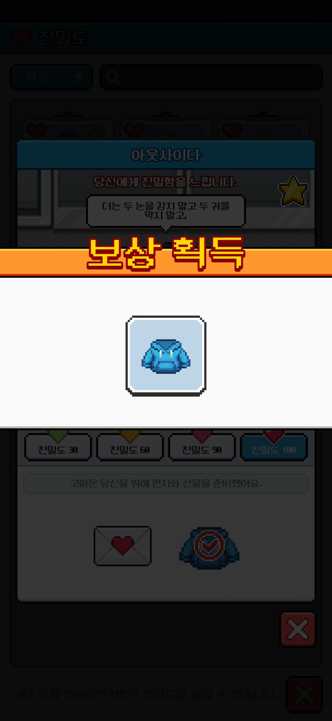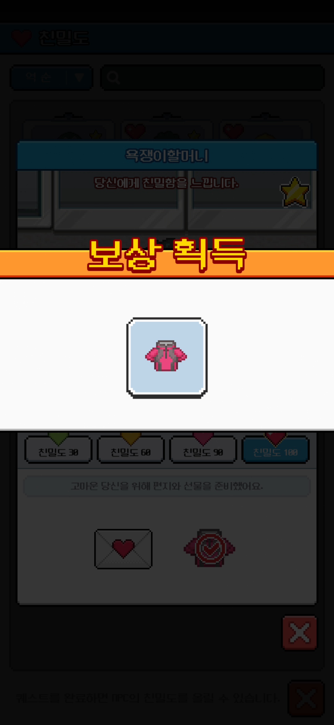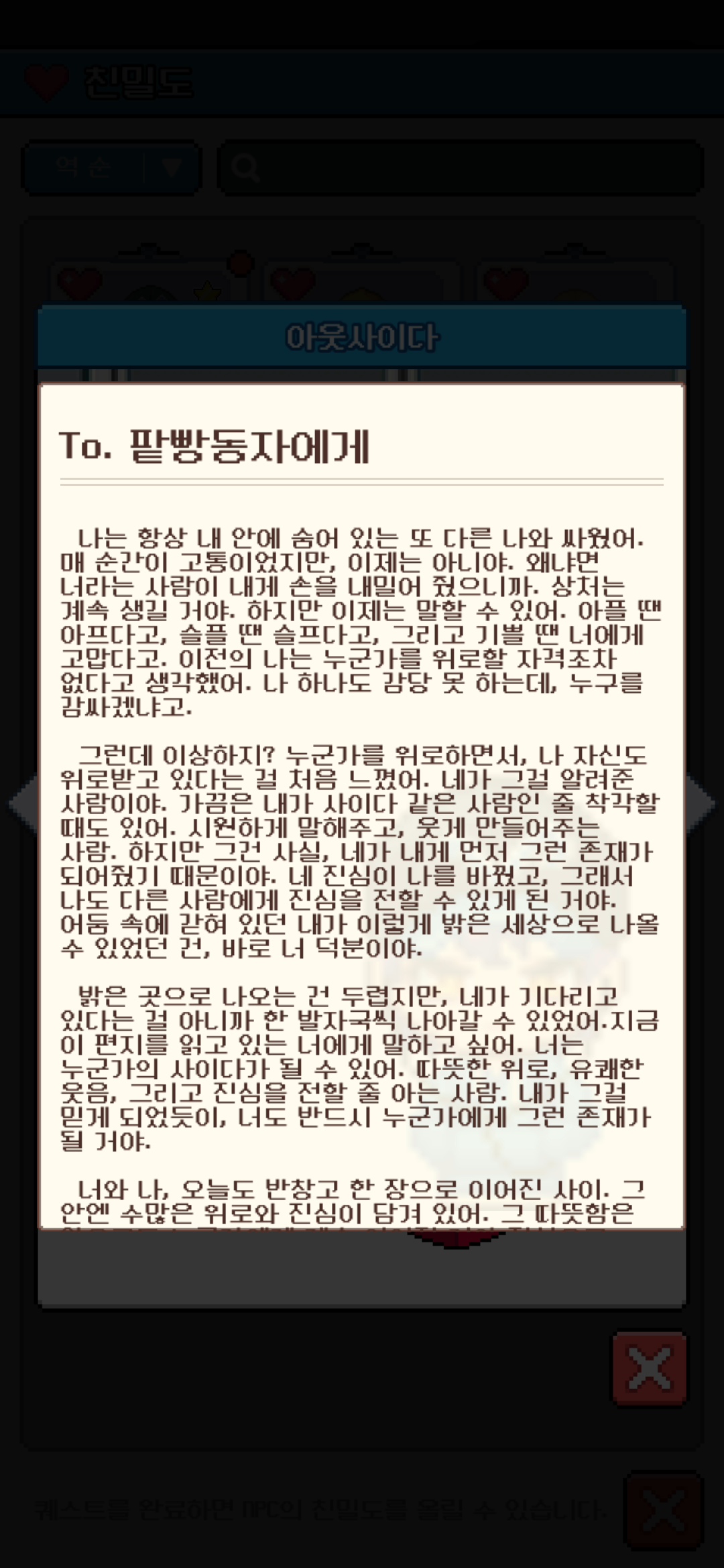 8명의 NPC 친밀도 모두 100 달성 완료입니다! :)