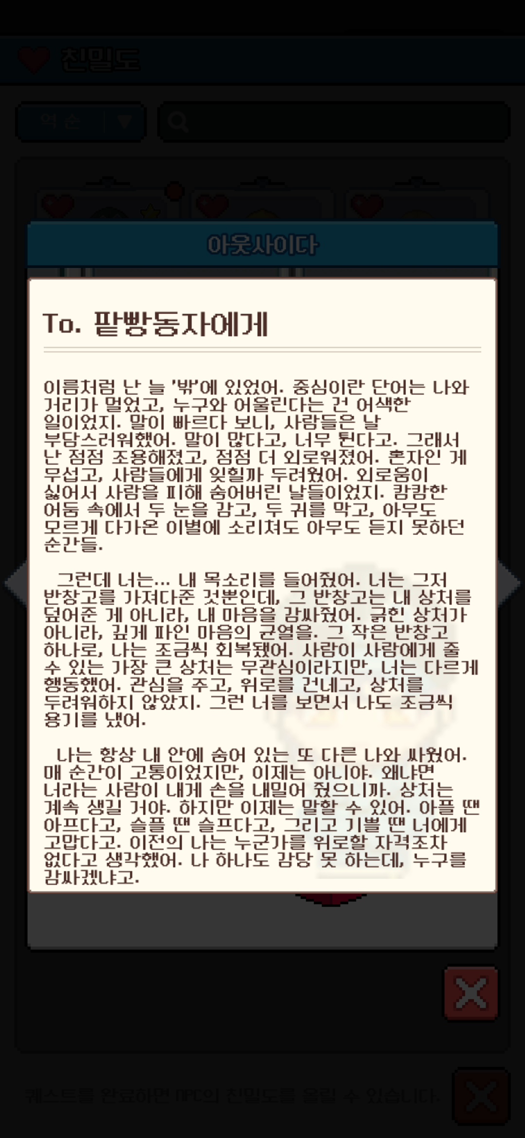 아웃사이다의 친밀도 100 달성을 다하고