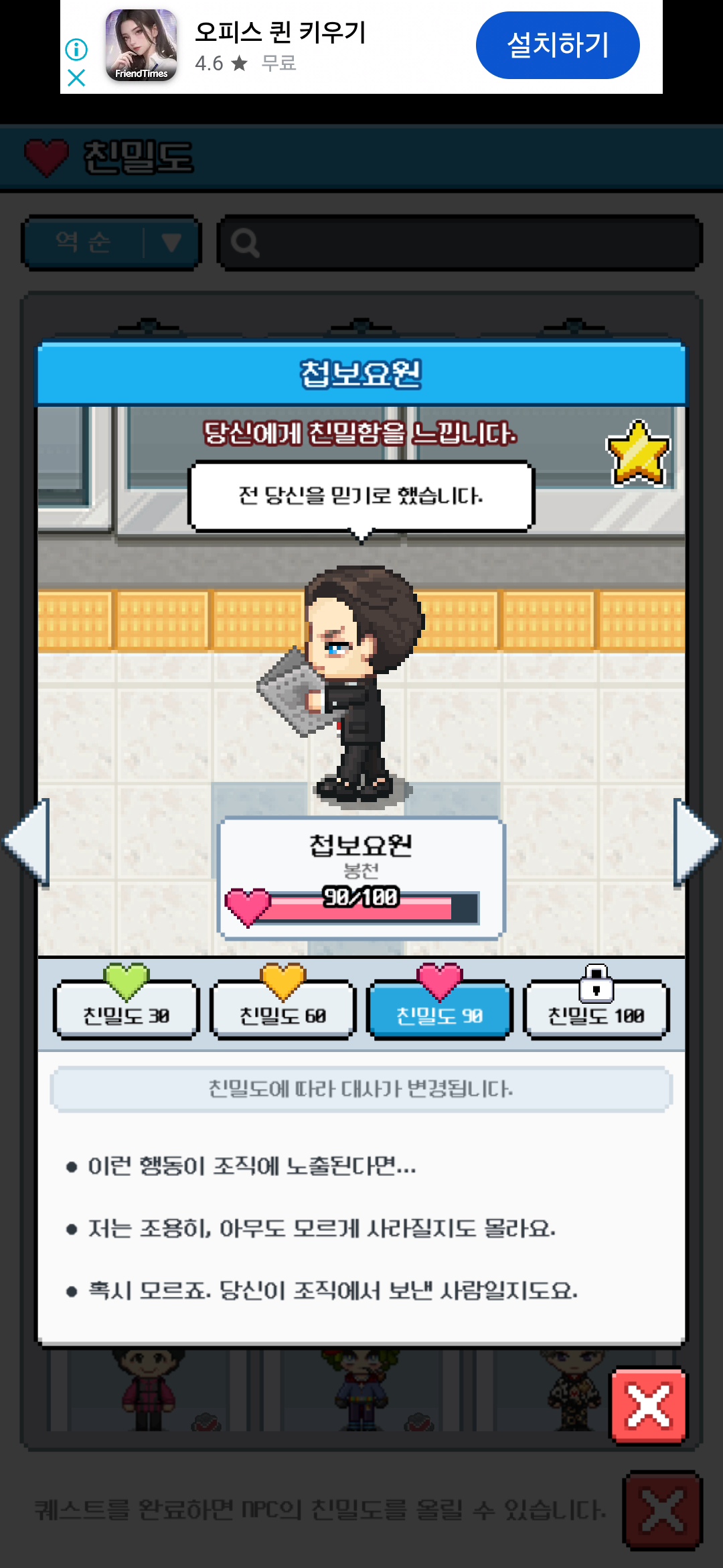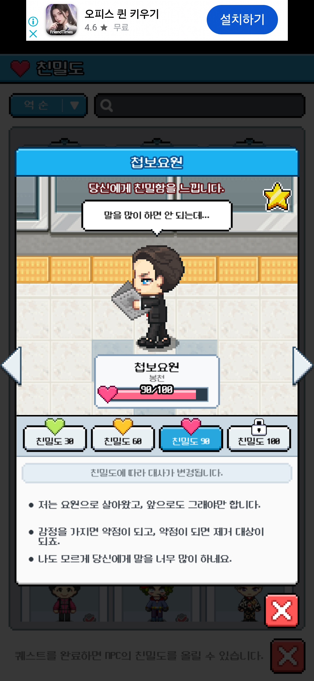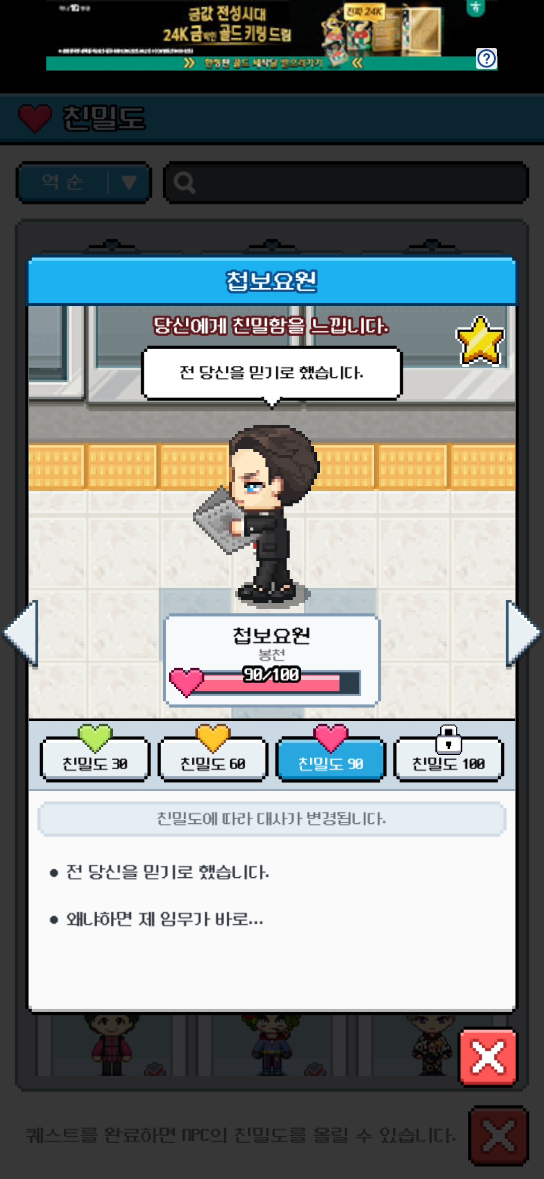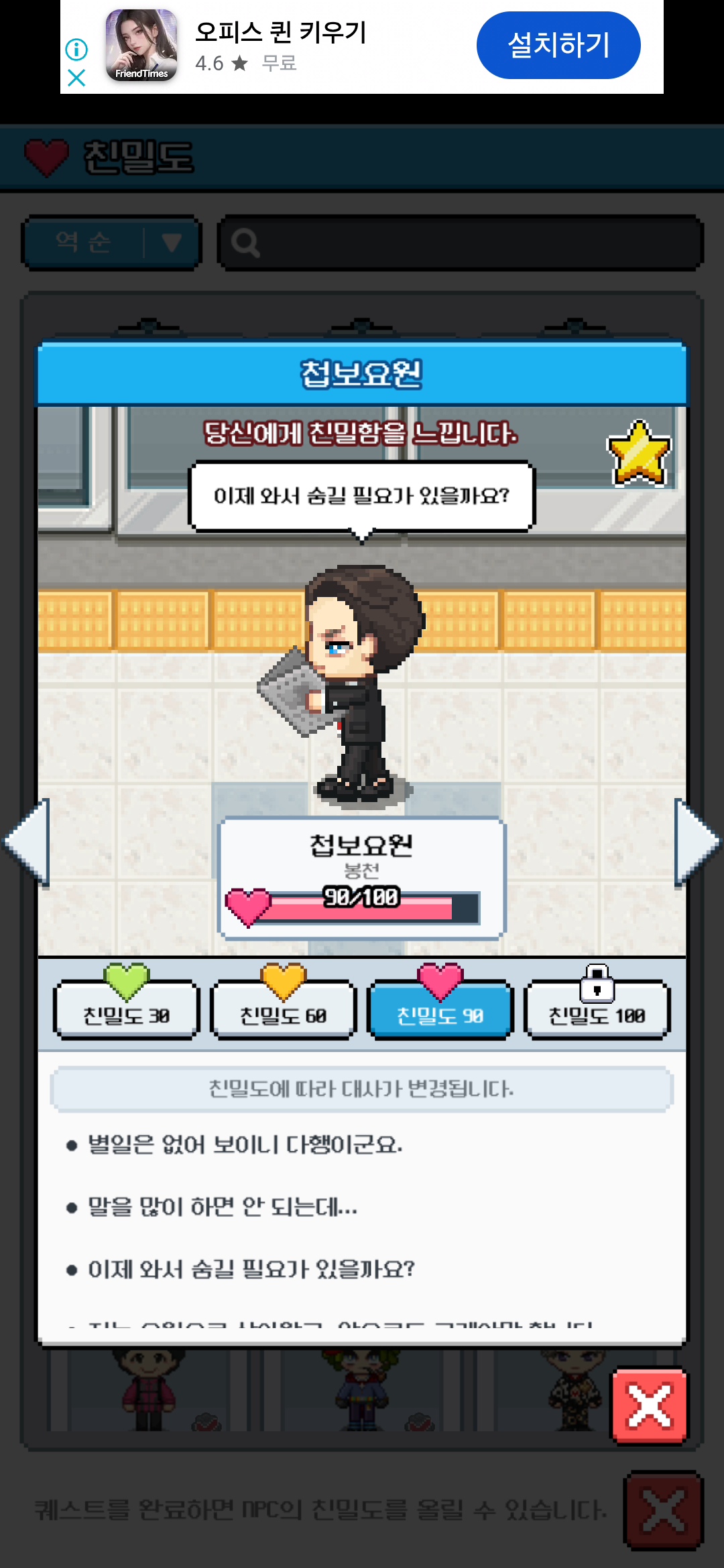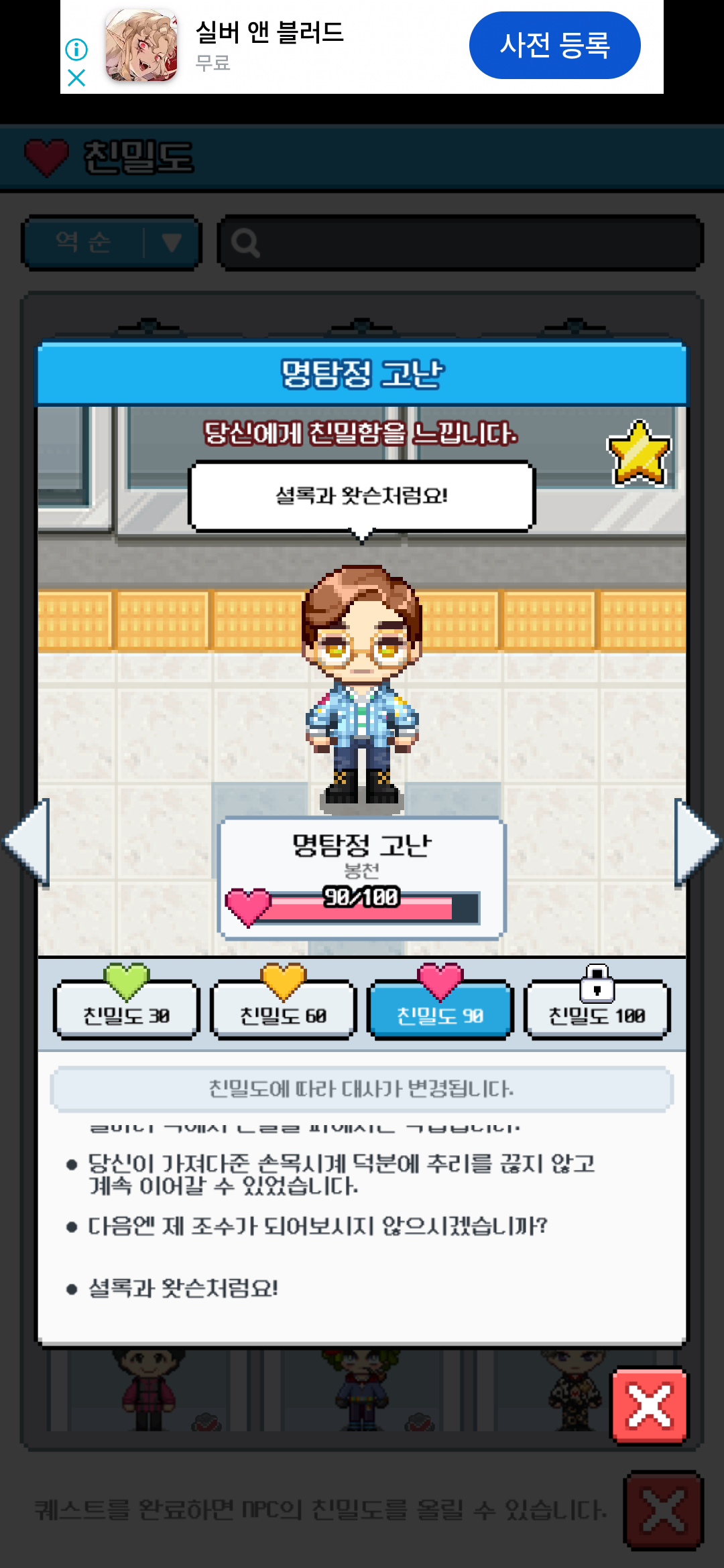이제 100만 채우면 NPC 친밀도 전부 완료입니다! :)
