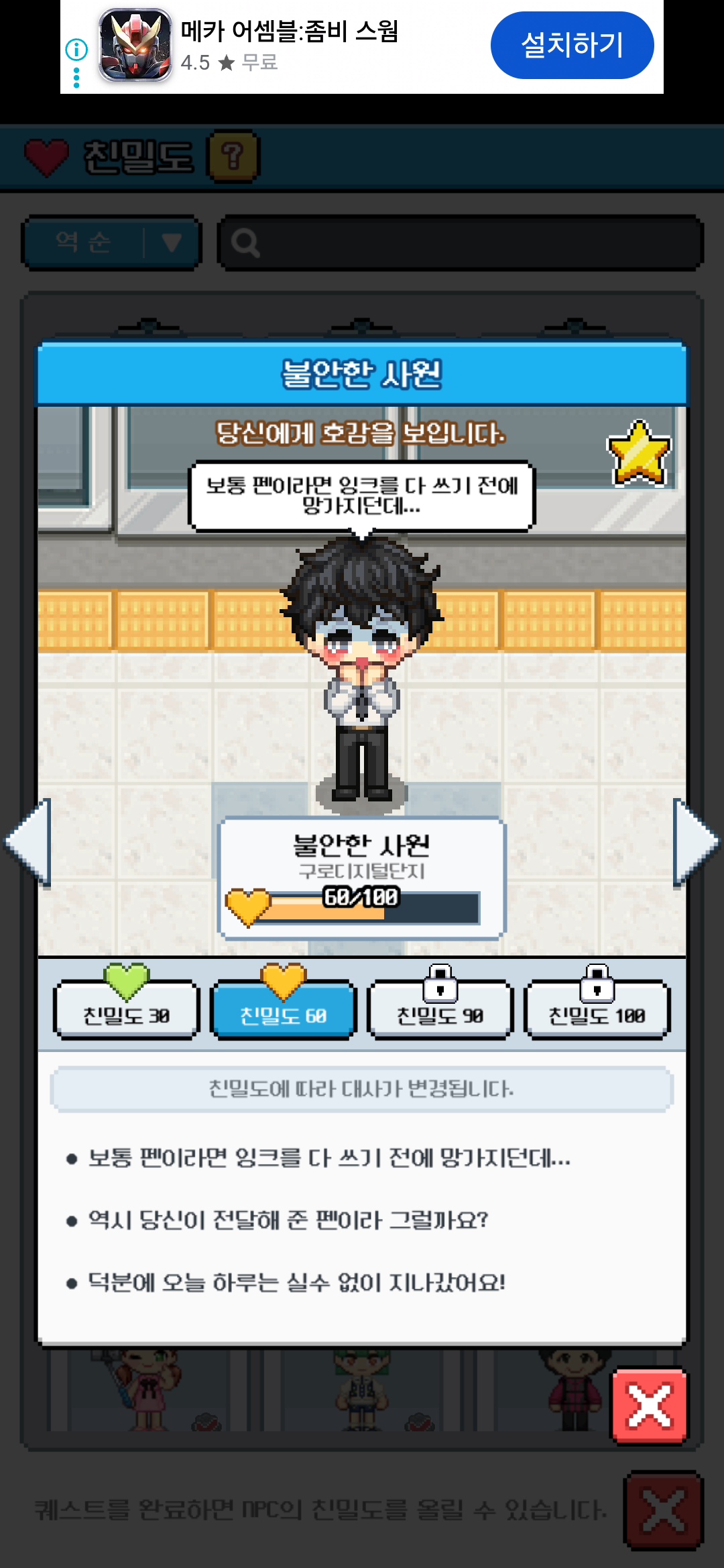 💬자유 게시판 불안한 사원 친밀도 60달성과 신당역 사진입니다! :) 팥빵동자 2025-06-17 06:30 85 3 공유 공유 URL 복사 페이스북 왓츠앱 카카오톡 라인 레딧 닫기 공유 2 0 댓글 3 삭제 이미지첨부 0/3000 등록