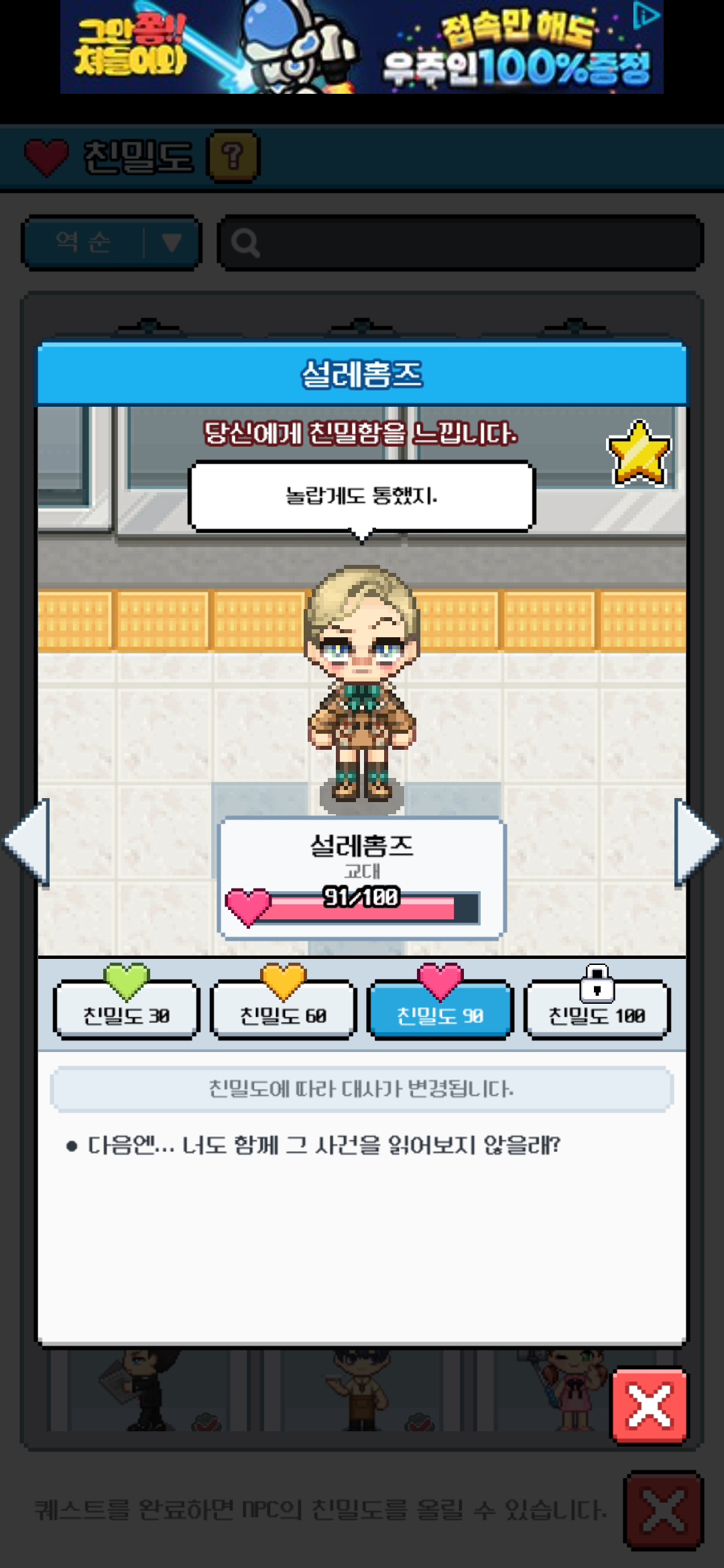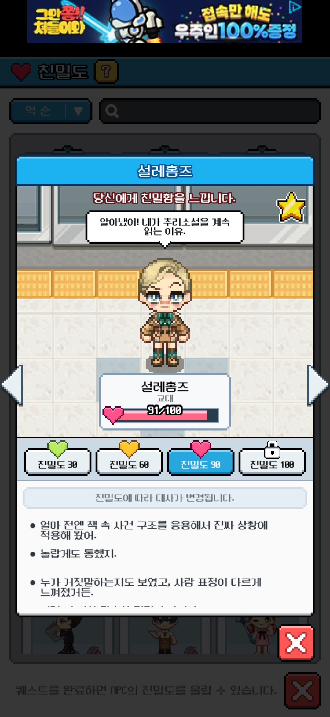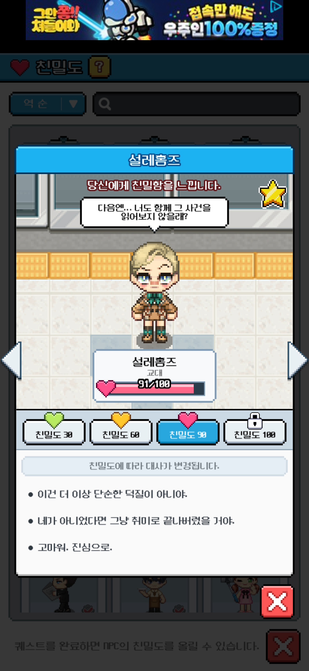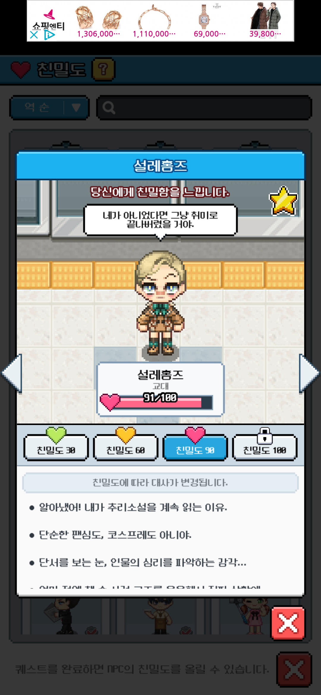친밀도 NPC가 많아서 꾸준히 배달퀘스트 하고 있습니다. :)
