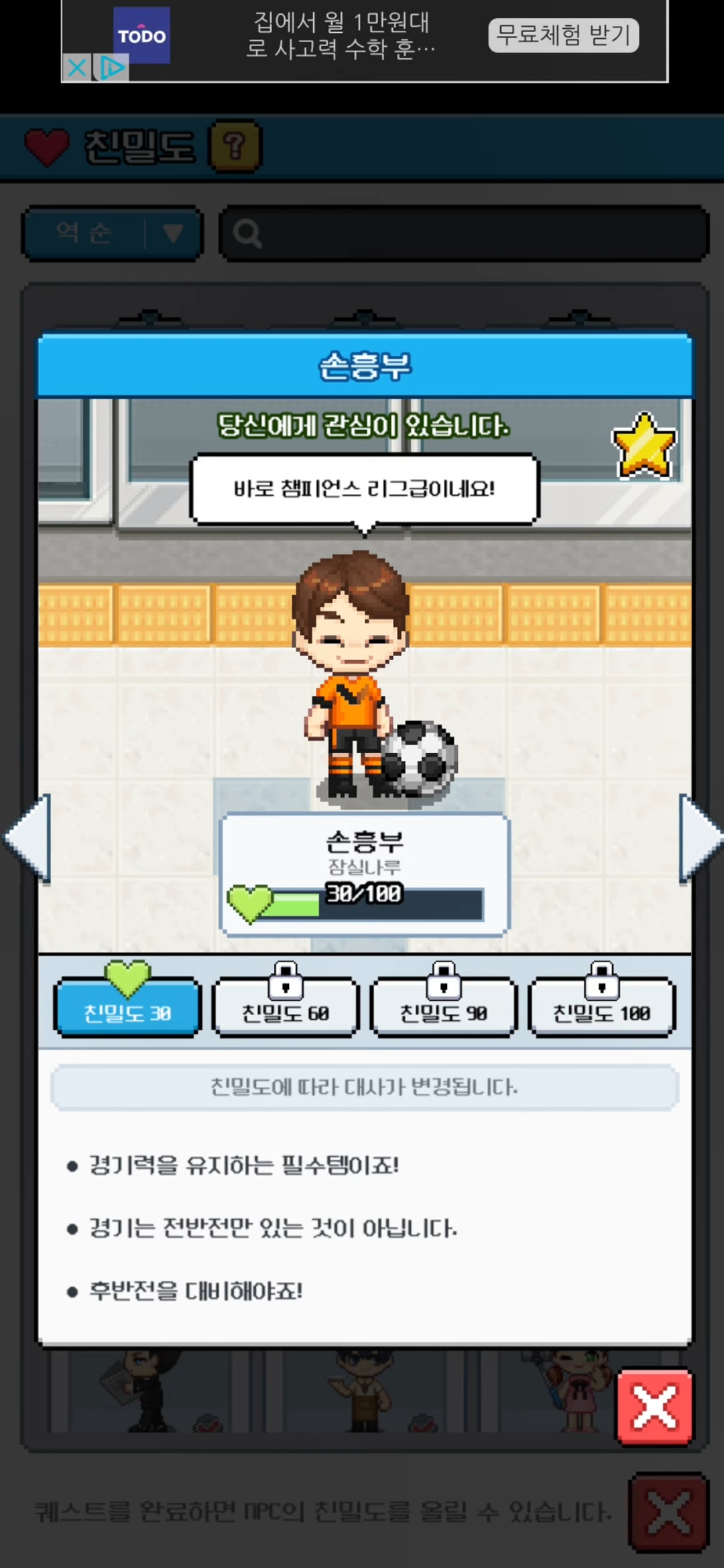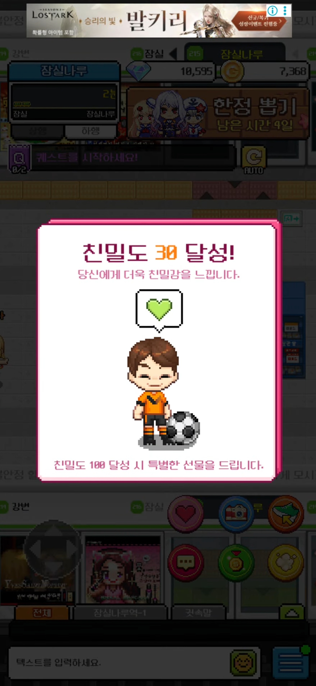 💬자유 게시판 손흥부 친밀도 30달성입니다. :) 팥빵동자 2025-06-26 10:50 63 1 공유 공유 URL 복사 페이스북 왓츠앱 카카오톡 라인 레딧 닫기 공유 1 0 댓글 1 삭제 이미지첨부 0/3000 등록