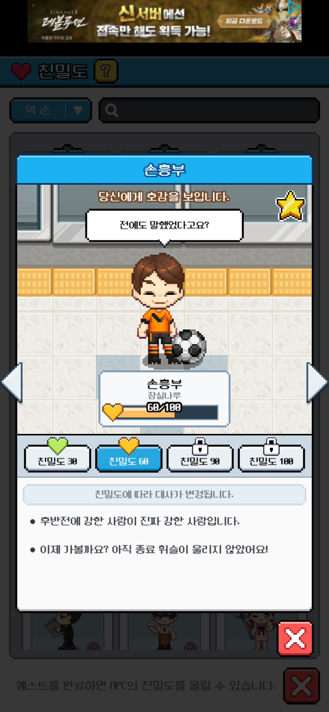 💬자유 게시판 손흥부 친밀도 60, 90, 100 달성입니다! :) 팥빵동자 2025-07-06 21:40 124 3 공유 공유 URL 복사 페이스북 왓츠앱 카카오톡 라인 레딧 닫기 공유 4 0 댓글 3 삭제 이미지첨부 0/3000 등록