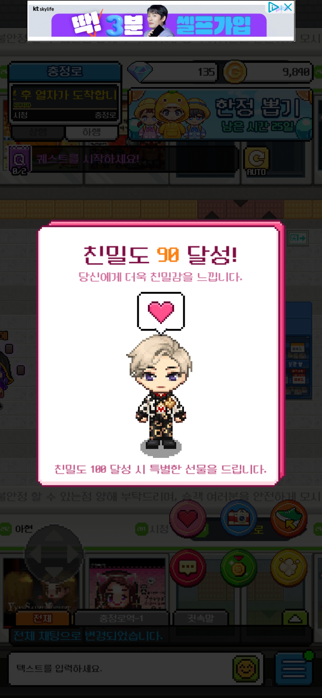 💬자유 게시판 버츄얼아이돌 친밀도 90 달성!! 고건준 2025-08-05 21:48 127 1 공유 공유 URL 복사 페이스북 왓츠앱 카카오톡 라인 레딧 닫기 공유 축하해주세요~! 2 0 댓글 1 삭제 이미지첨부 0/3000 등록