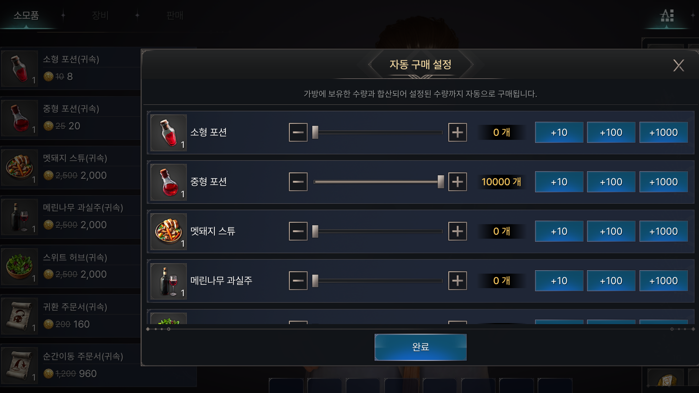 자동구매 이건 뭔가요? 물약다떨어지면 알아서 상점가서 사오는거 아닌가요? 왜 적용이 안되지