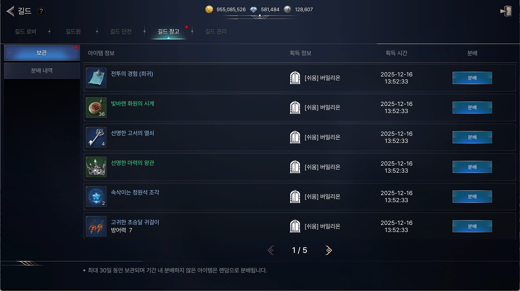 ● 길드 던전 도전 성공 인증한 길드 중 추첨을 통해 소속된 길드원 전체에게 아래의 보상을 지급해 드립니다.
