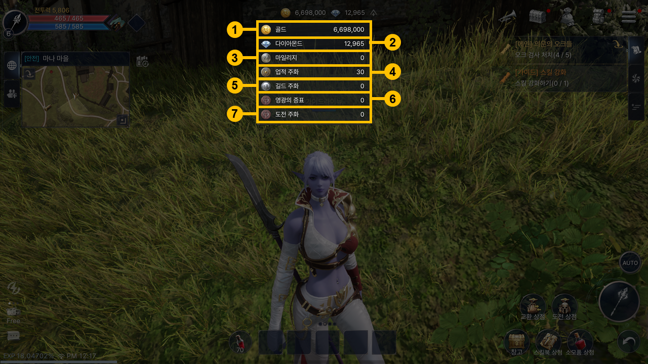- 업적 주화는 일일 의뢰와 업적에서 획득할 수 있으며,