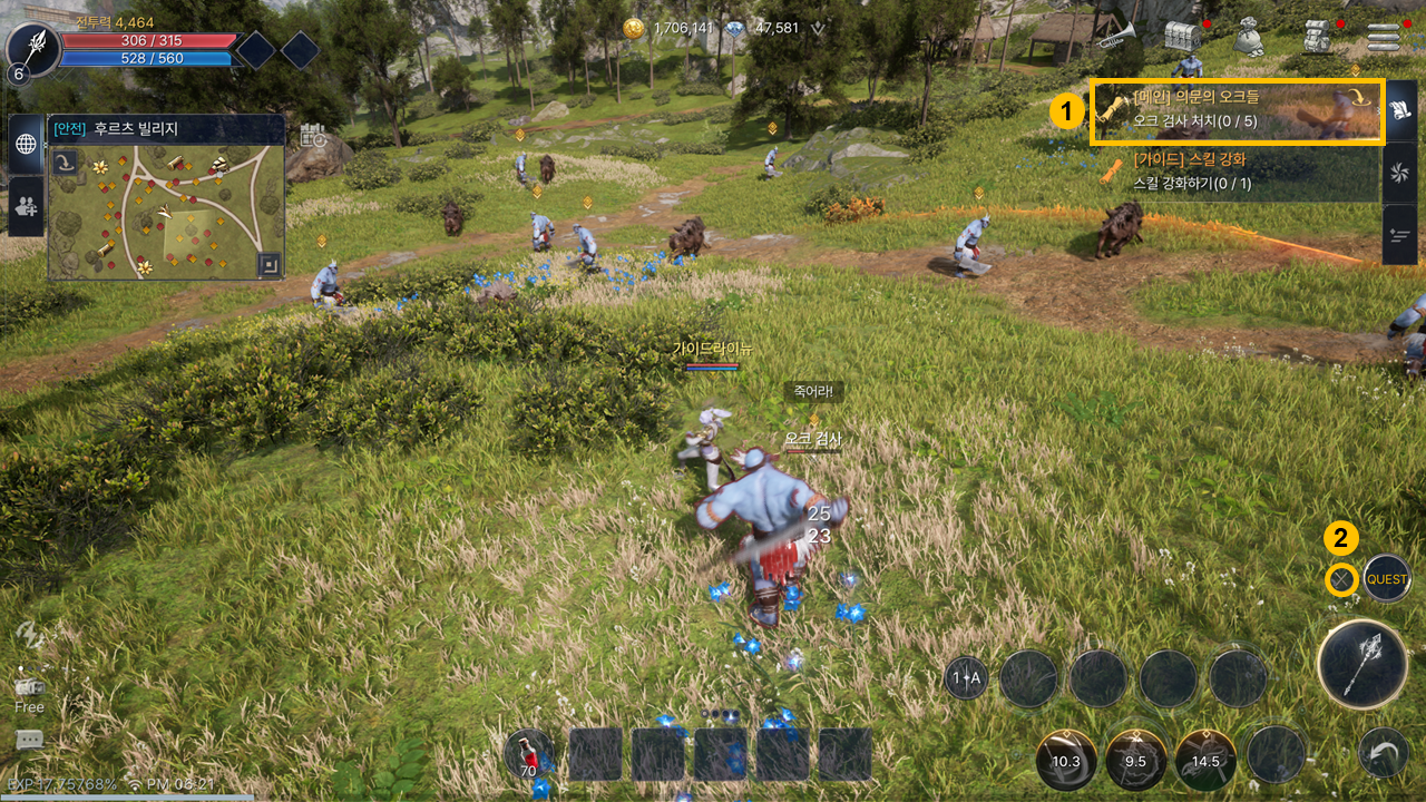 - ※ PC버전에서는 왼쪽 대괄호 키를 입력하여 퀘스트 전투할 수 있도록 기본 설정되어 있습니다.