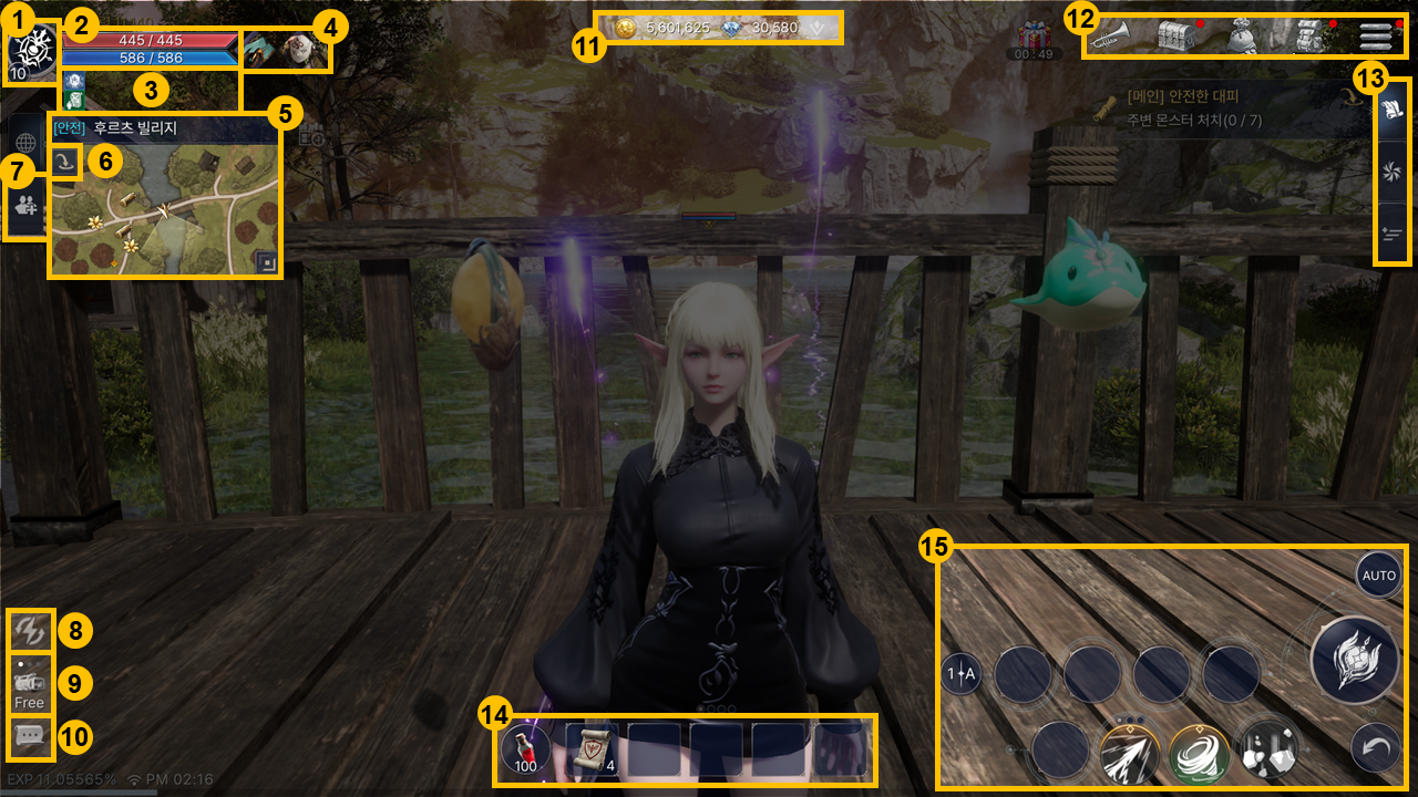 - - 캐릭터의 HP와 MP를 확인할 수 있습니다.