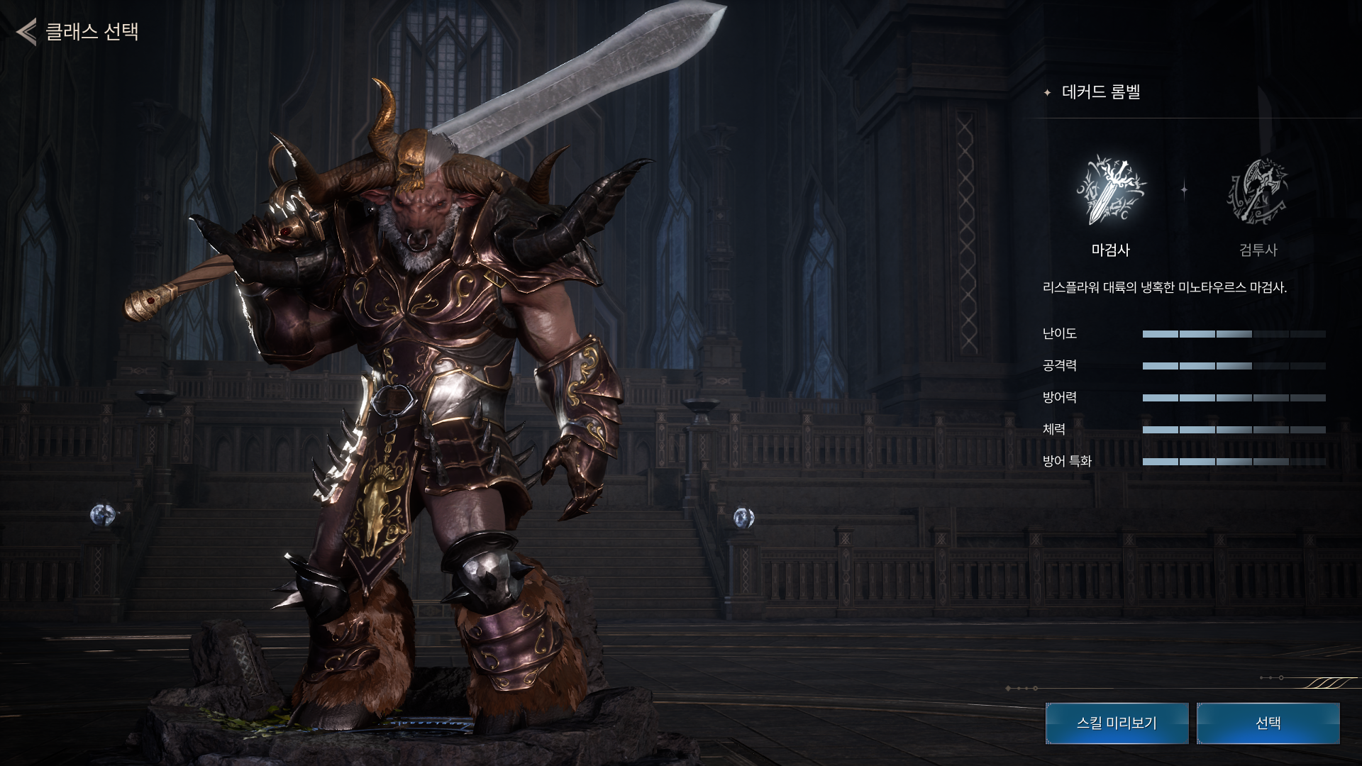 양손 도끼를 사용하며 공격에 초점을 맞춘 검투사, 두 가지 클래스로 플레이할 수 있습니다.