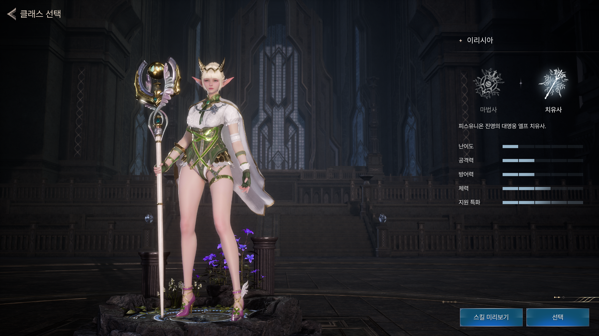 - 이리시아는 리스플라워 대륙에서 대영웅으로 불리는 엘프입니다. 오브를 사용하며 강력한 마법으로 다수의 적을 제압할 수 있는 마법사, 스태프를 사용하며 자연의 힘으로 아군을 지원하는 치유사, 두 가지 클래스로 플레이할 수 있습니다
