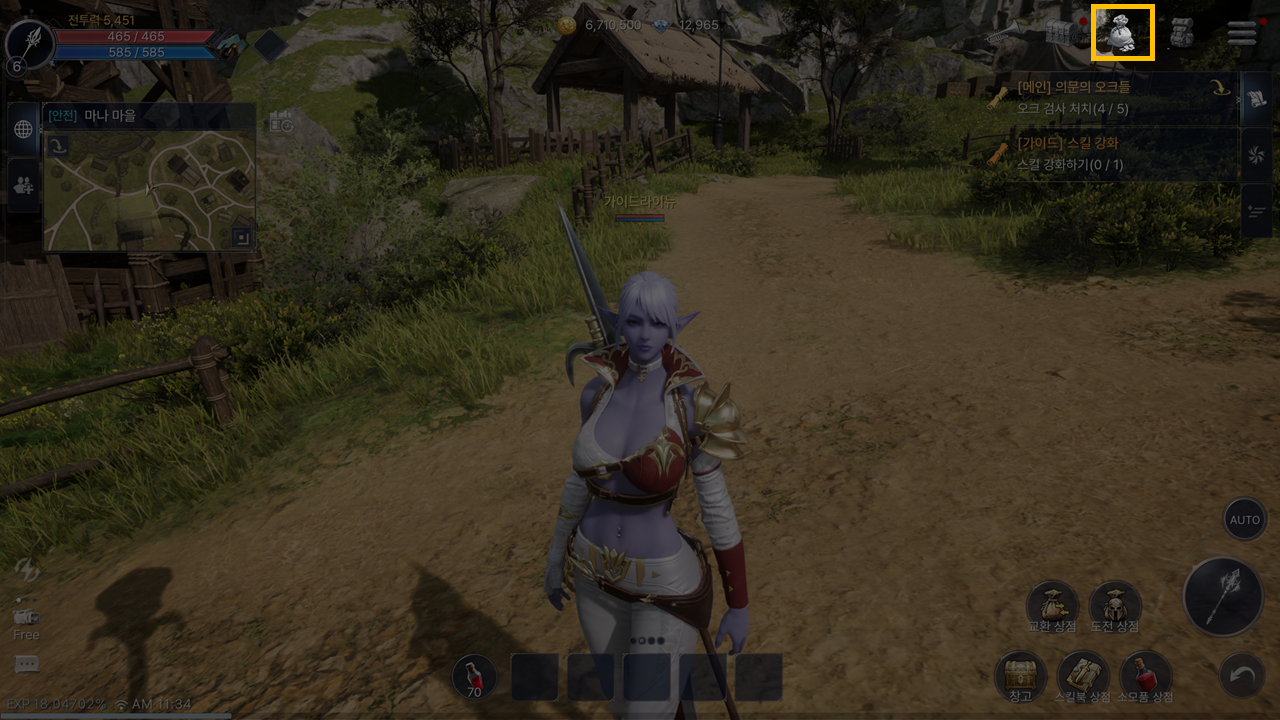 - 메인 화면 오른쪽 위 상점 아이콘을 클릭하여 상점 화면으로 이동할 수 있습니다.