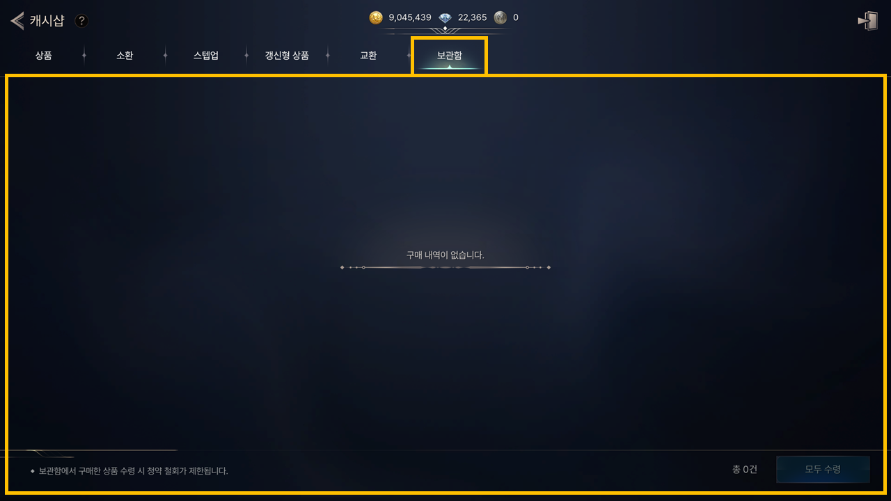 - - 상점에서 결제한 유료 상품은 보관함으로 지급됩니다.