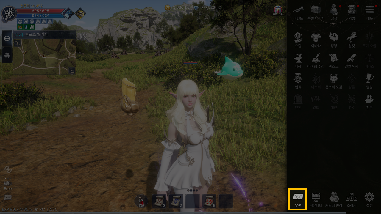 - 메뉴 > 우편을 클릭하면 우편 화면으로 이동됩니다.