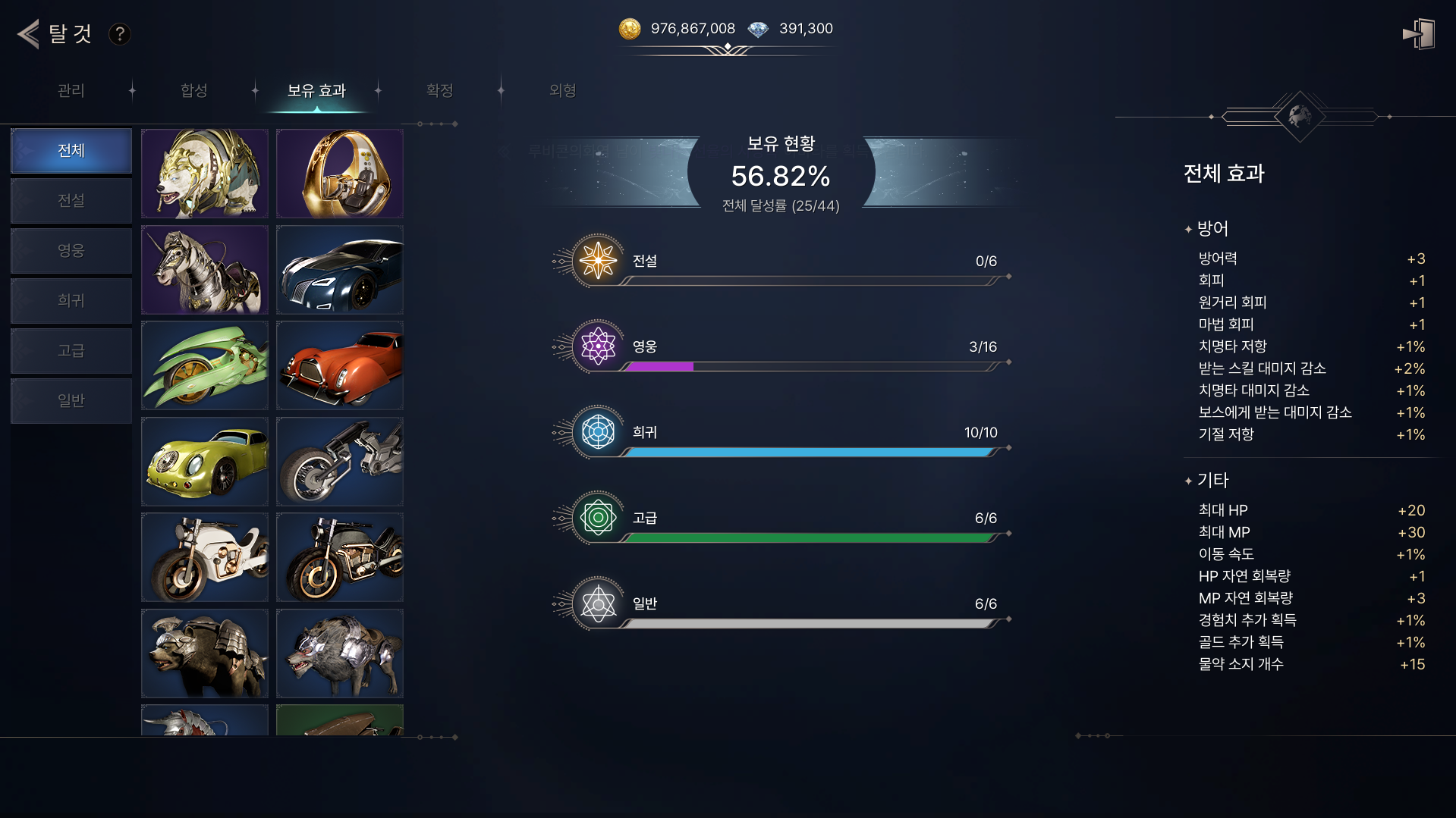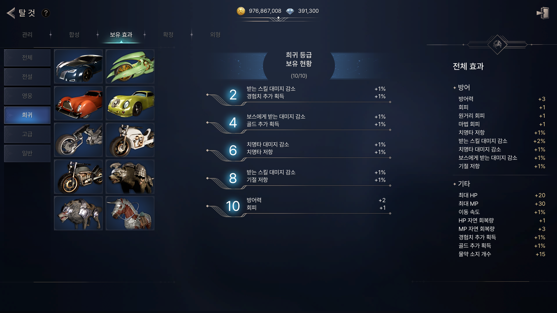 - 등급별 탈것 보유 개수에 따라 보유 효과를 얻을 수 있습니다.