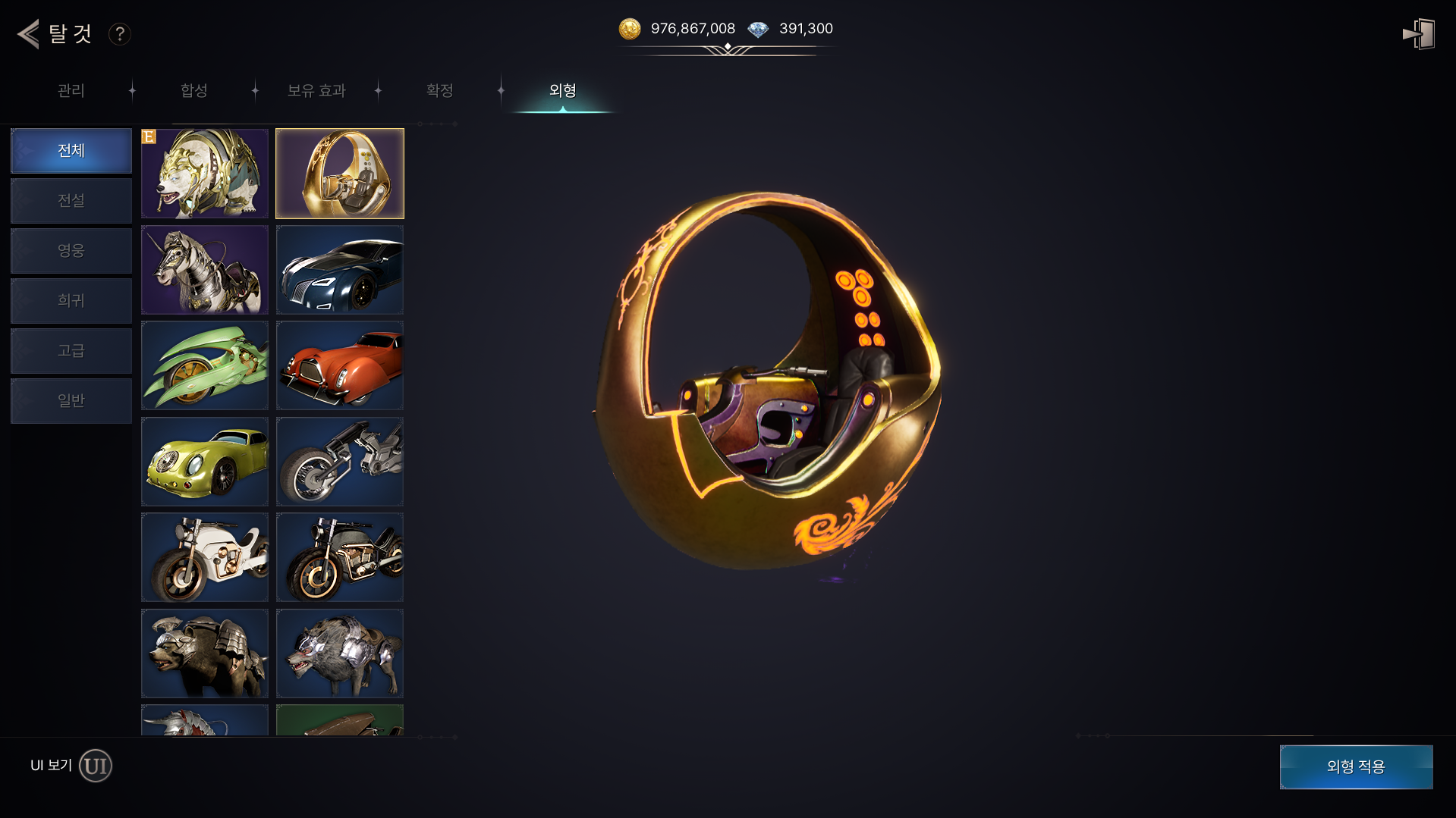 - 실제 장착 중인 탈것과 별개로 외형을 자유롭게 적용할 수 있습니다.