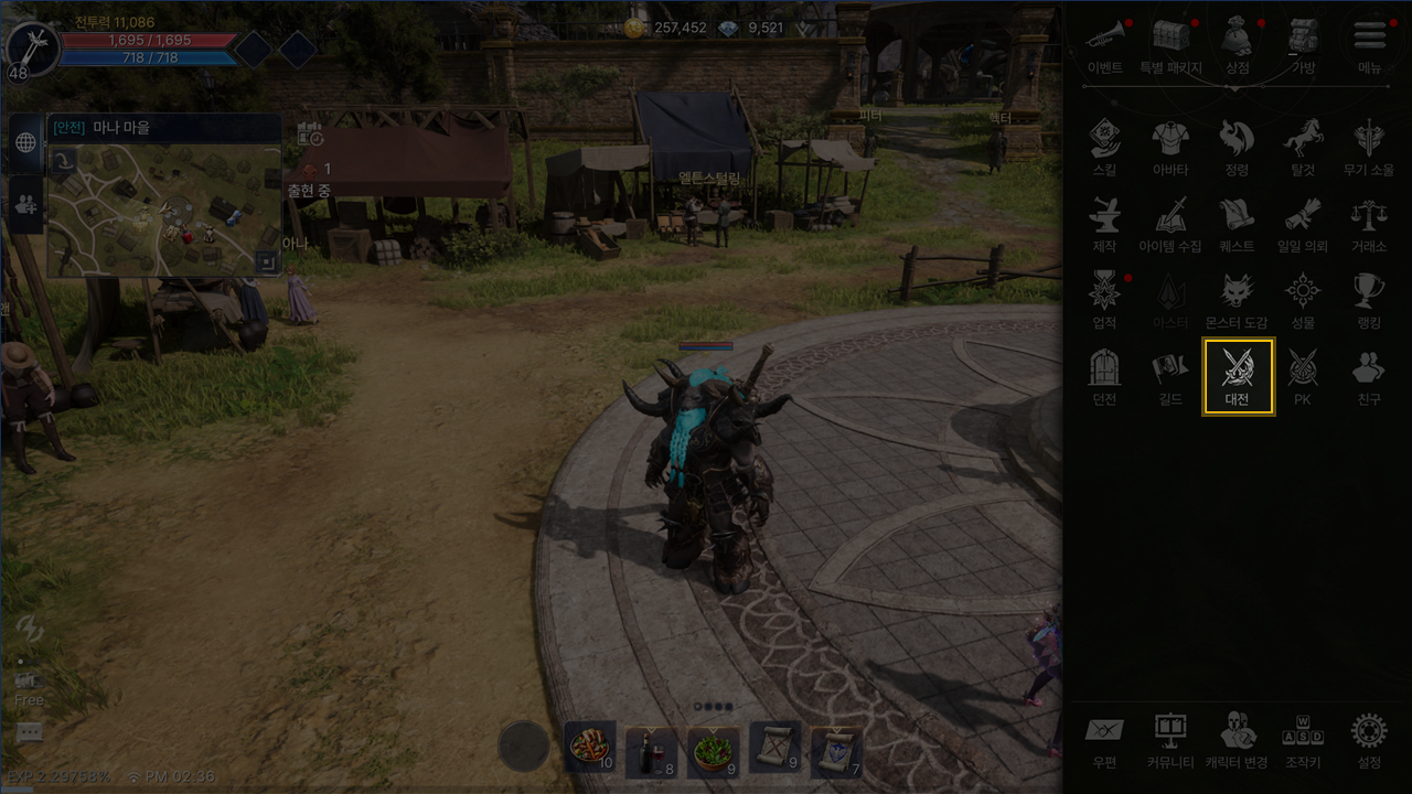 ※ 대전은 회색 고원 메인 퀘스트 [숲의 광인들 6장.미츠루의 행방]을 완료하면 이용할 수 있습니다.