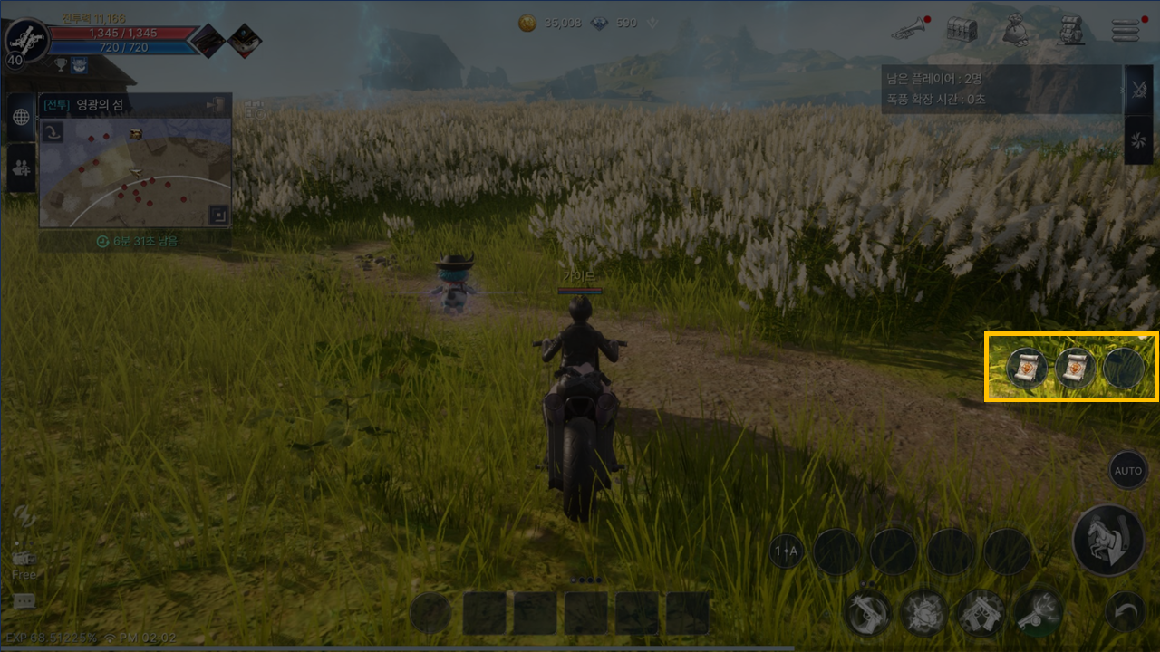 ※ 영광의 섬(팀전)은 아이템 퀵 슬롯 개수가 1개입니다.